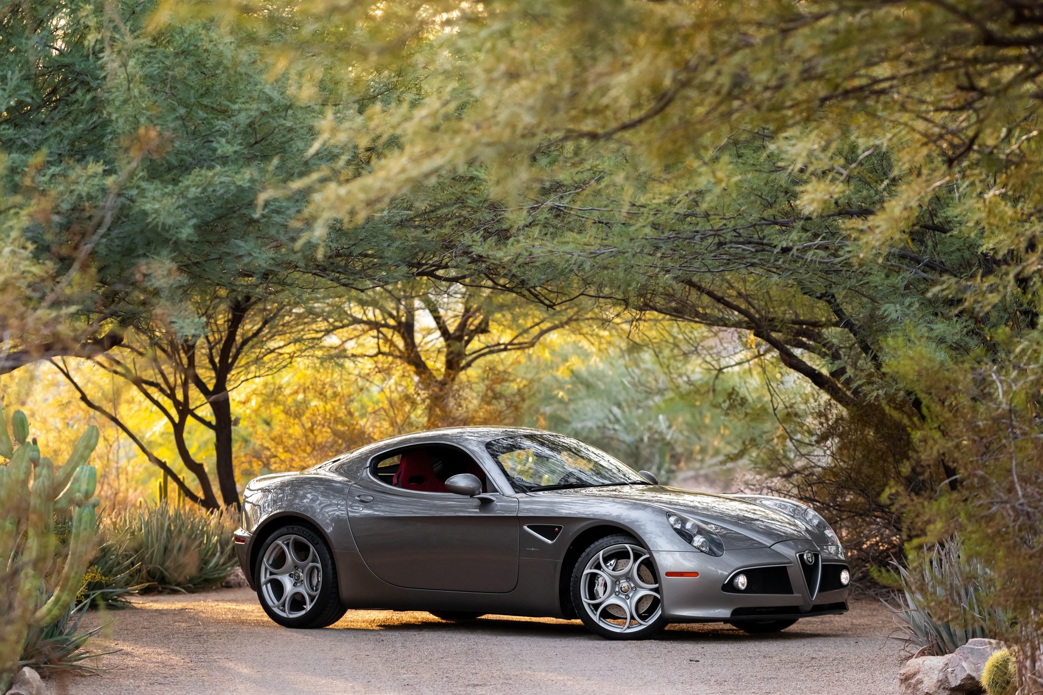 This example is finished in custom-order Grigio Nuvolari and features bi-xenon headlights, fog lights, fender vents, and quad exhaust outlets.