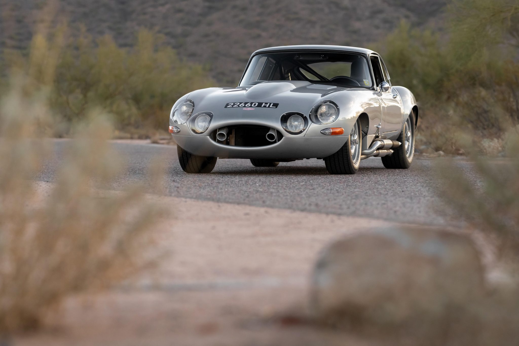 A set of 15×7″ Dunlop knock-off alloy wheels were fitted with BFGoodrich Radial T/A tires in 2022. Braking is handled by XKE Series III-sourced vented rotors matched with alloy four-piston racing calipers up front and vented rotors with Series II-sourced calipers at the rear. The braking system is equipped with a dual-circuit master cylinder, an adjustable balance beam, and stainless-steel hoses.