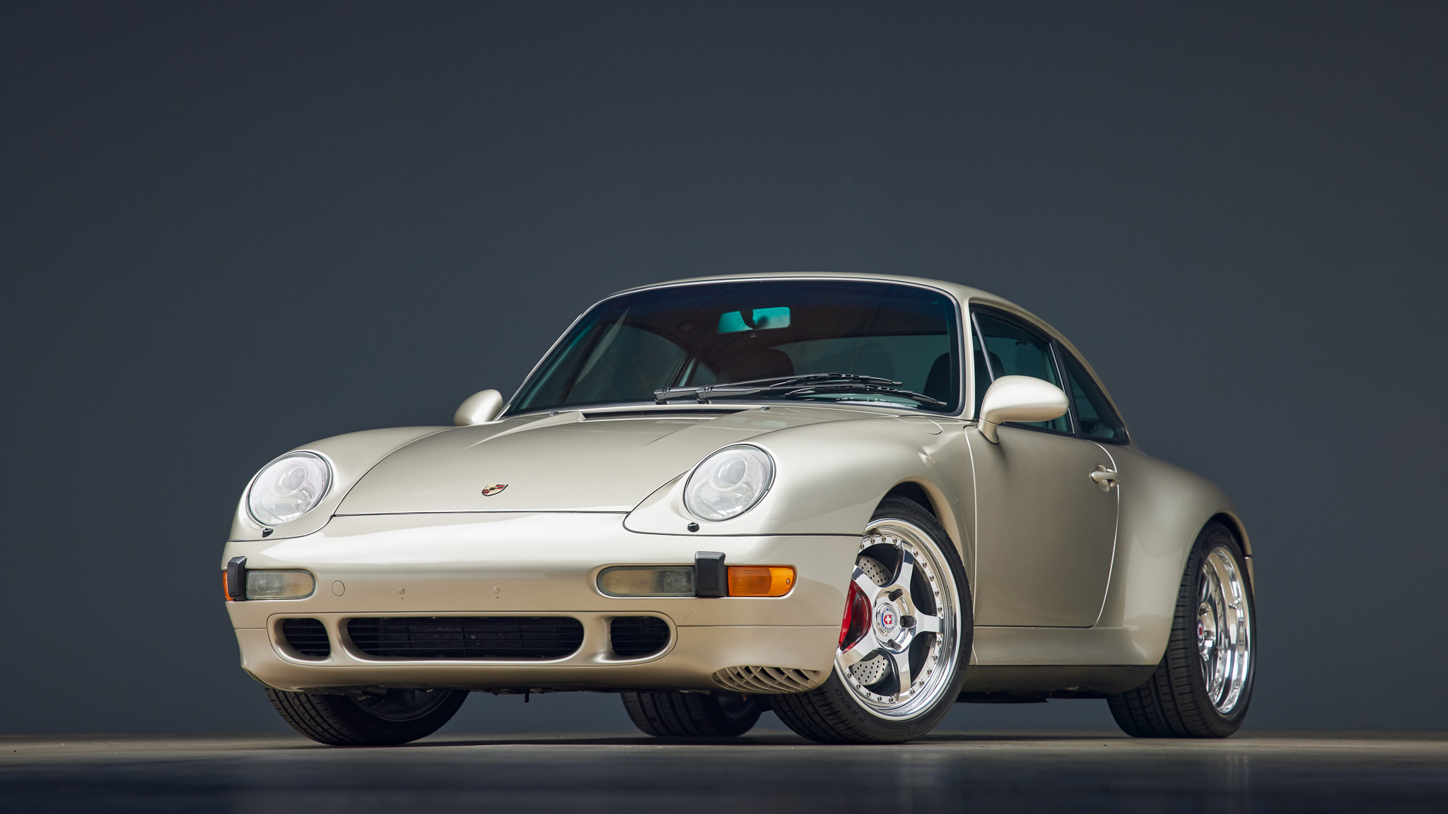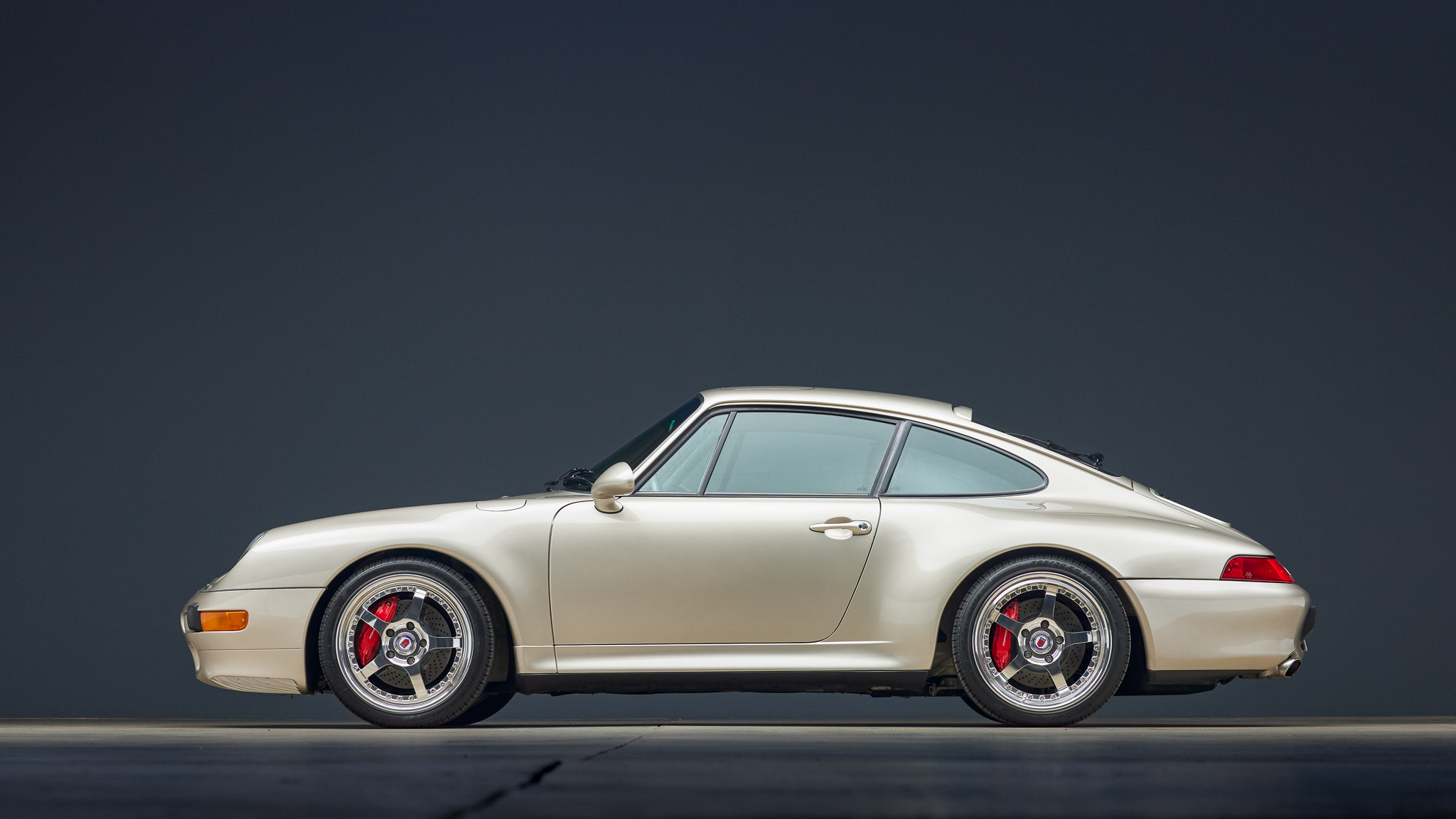 Modular 18″ HRE Performance 545 wheels are mounted with Pirelli P Zero Rosso tires. The car features an Automatic Brake Differential (ABD), and the 993 was the first 911 to feature multi-link rear suspension. Braking is handled by red-finished Porsche-branded calipers over cross-drilled rotors at all four corners, and the pads, rotors, and wear sensors were replaced in November 2023 along with the left CV boot.