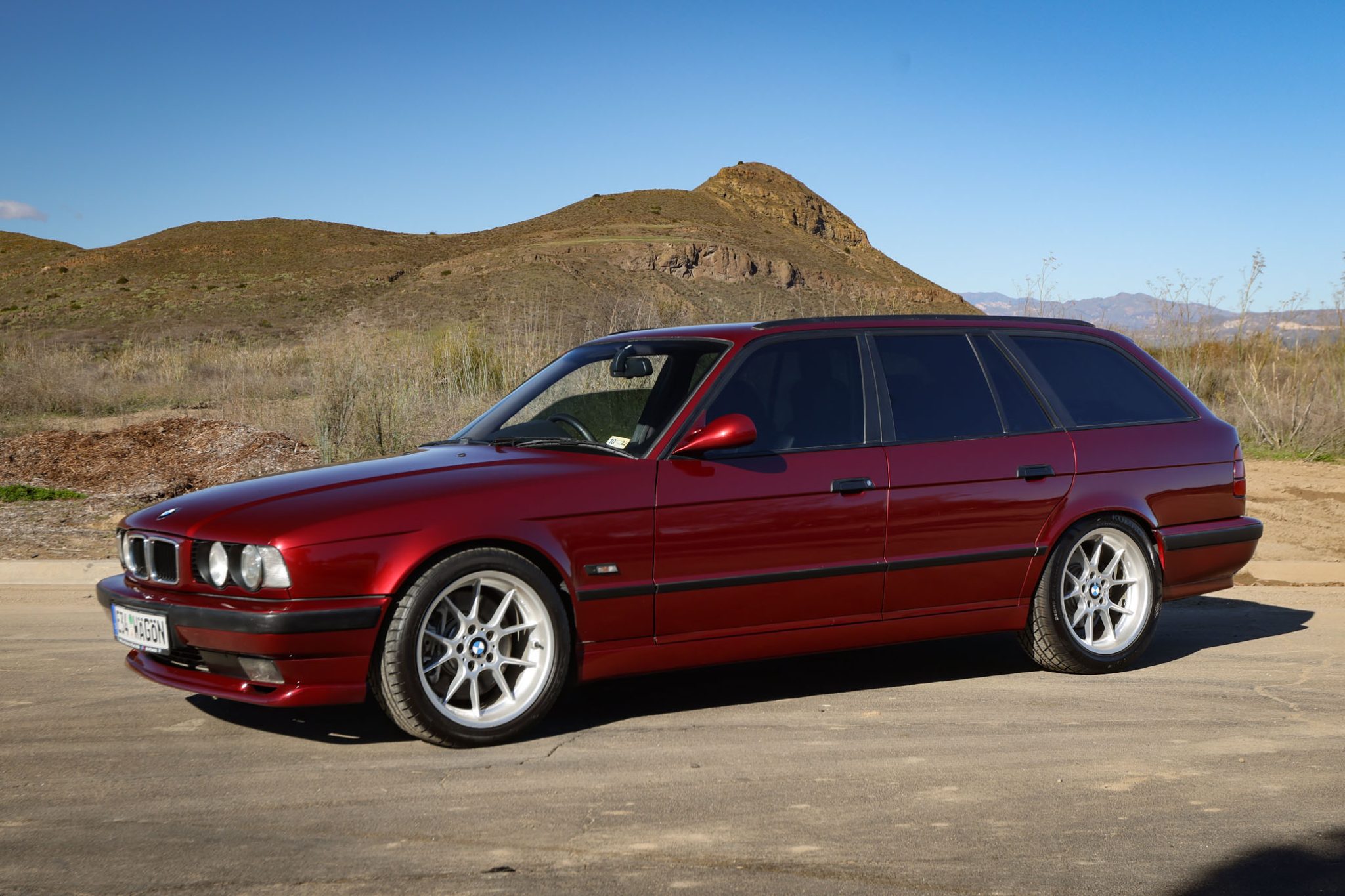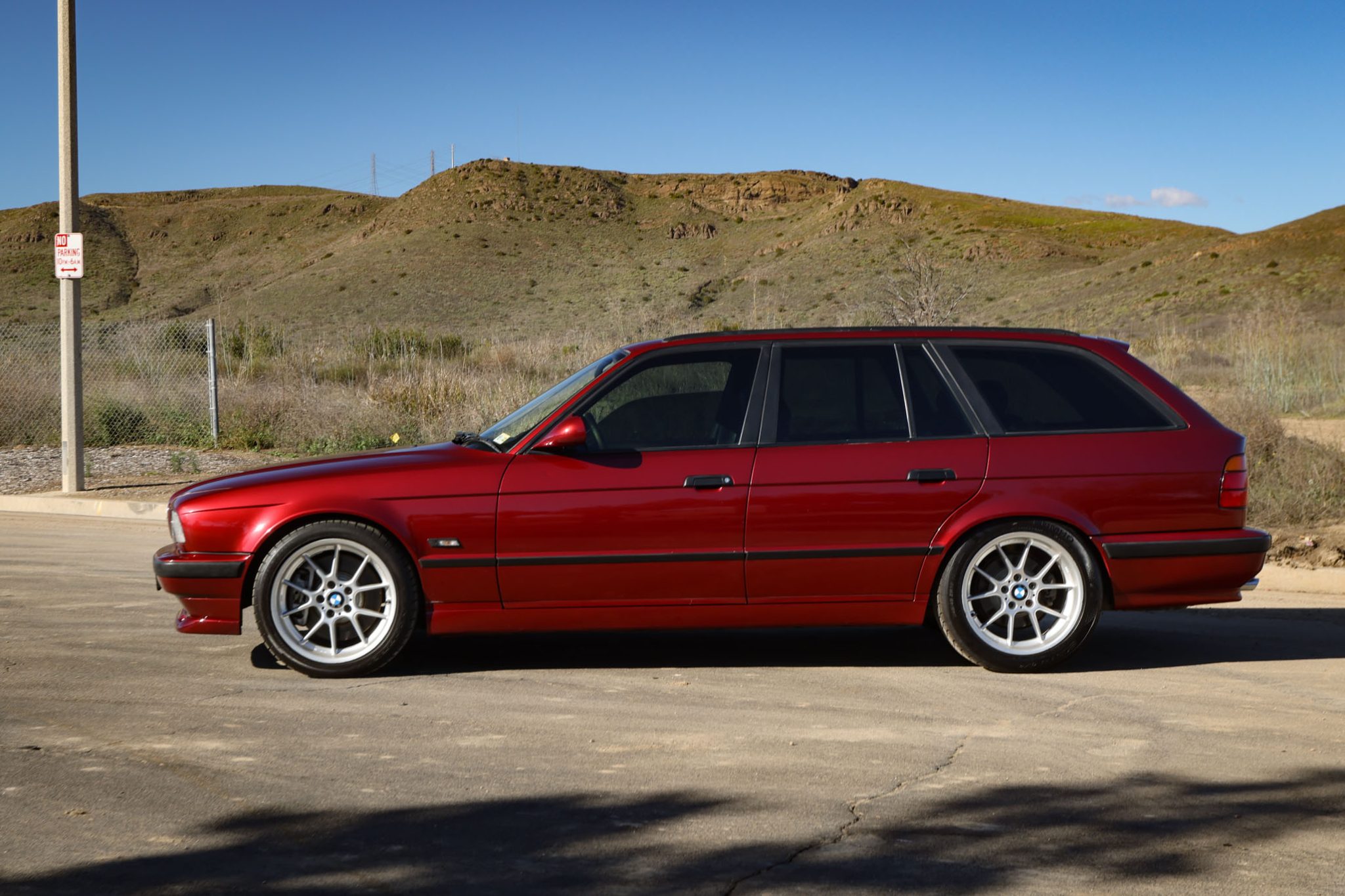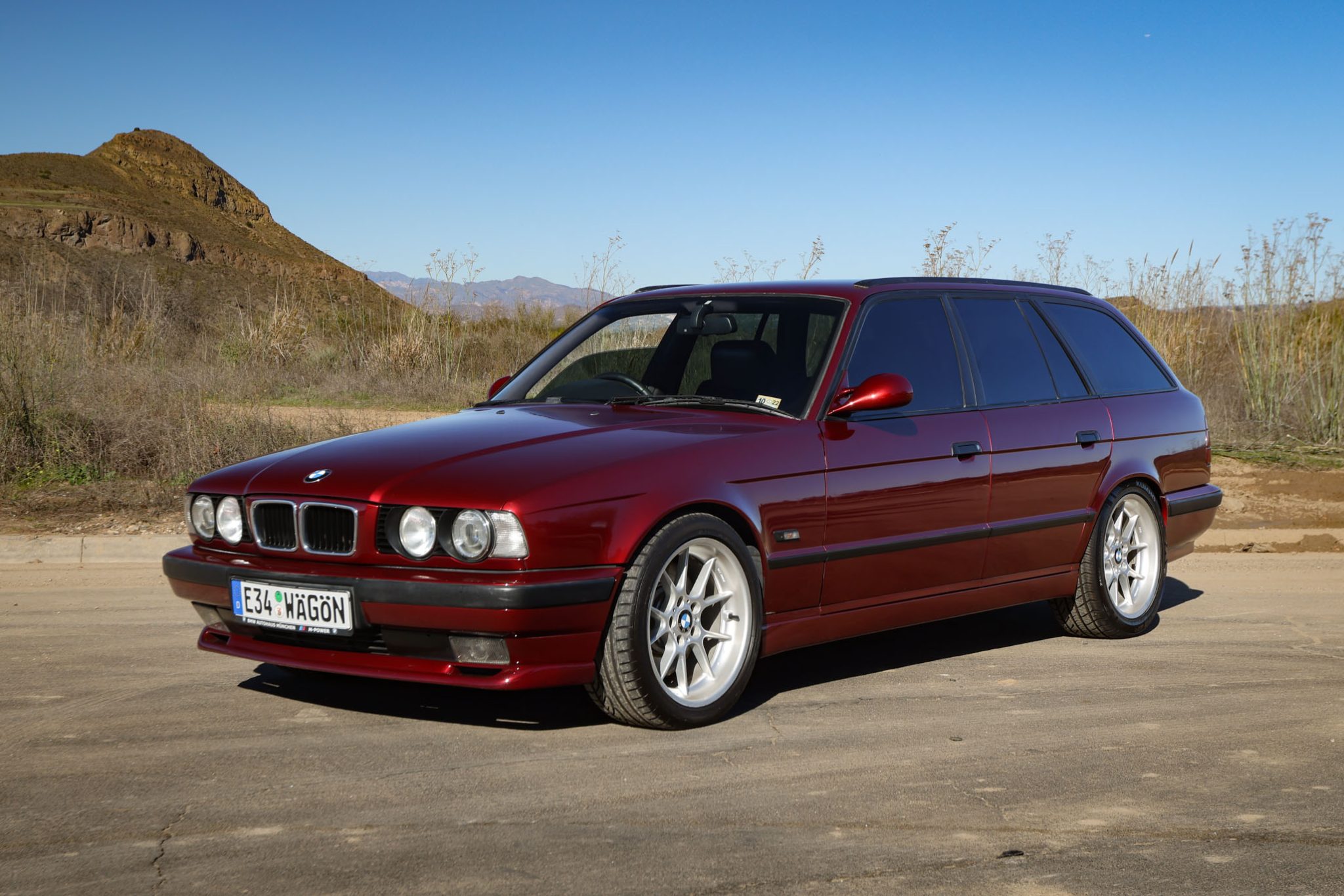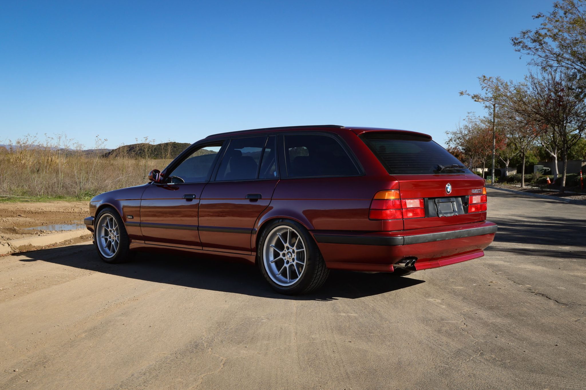 BBS RK 18″ wheels with BMW-roundel center caps are mounted with 245/40 Dunlop SP Sport 01 tires up front and 245/45 Kumho Ecsta 4X II tires out back. Braking is handled by four-wheel anti-lock discs that are said to utilize later-model 335i front and contemporary 540i rear components. The suspension has been modified with H&R lowering springs, Bilstein dampers, and aftermarket bushings. The brake lines, suspension bushings, and a control arm are said to have been replaced in 2023. Scrapes on the wheels along with corrosion on the wheel bolts and brake calipers are depicted in the gallery.