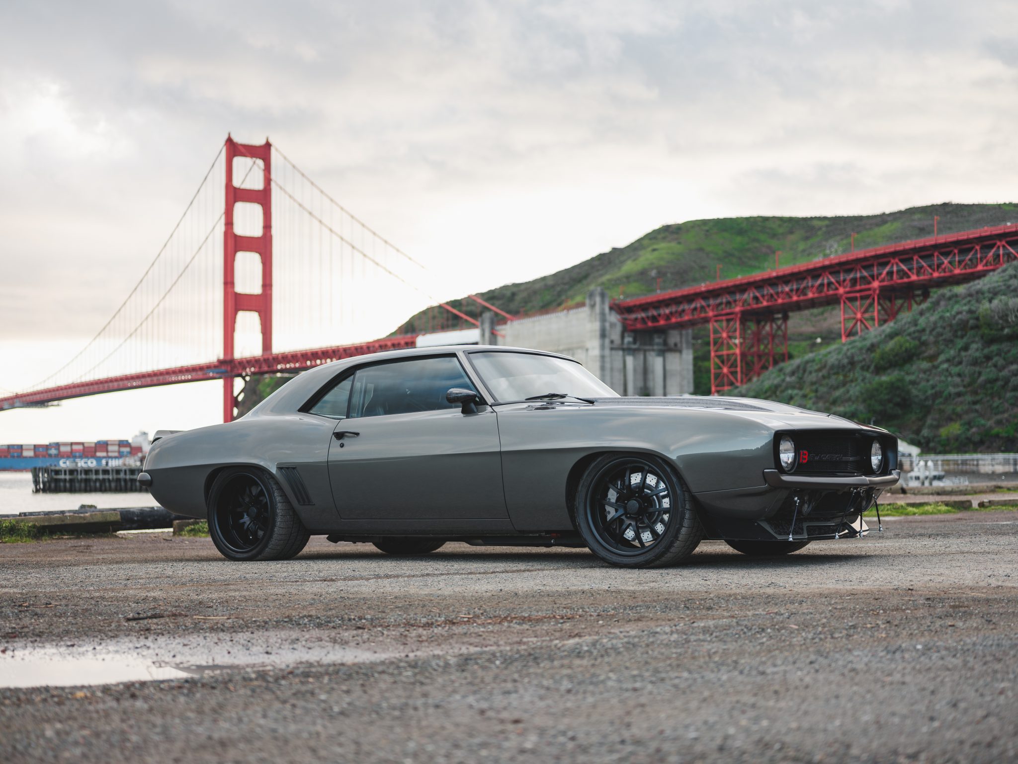 Black-finished 18″ American Racing wheels wear BFGoodrich g-Force Rival tires measuring 315/30 up front and 335/30 out back. The car is equipped with a Speedtech Performance front subframe, frame connectors, and rear torque arms as well as Ridetech adjustable coilovers and a power steering cooler. Braking is handled by six-piston calipers over ventilated rotors at all four corners, and a Wilwood master cylinder is also equipped.
