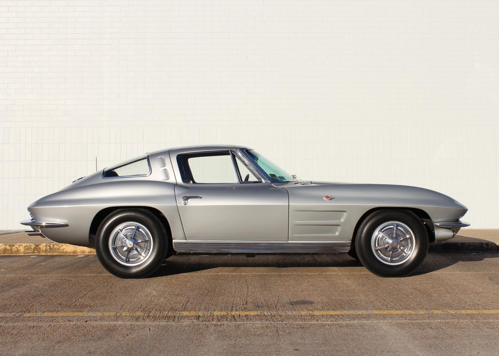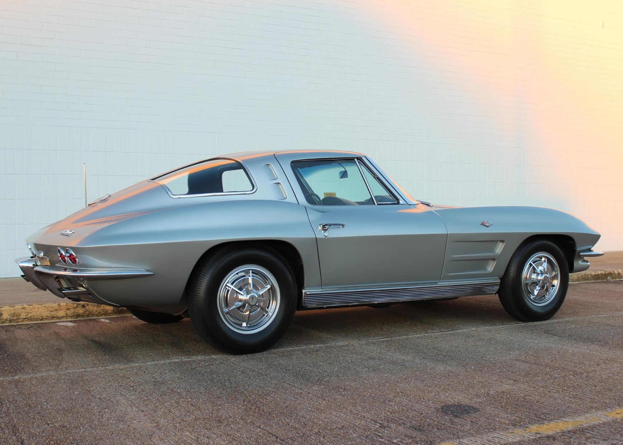 Silver-finished 15” steel wheels feature three-eared knock-off spinner-style hubcaps and are mounted with 6.70-15″ Firestone bias-ply tires. The C2 was the first Corvette to offer fully independent suspension, with upper and lower control arms at the front and a three-link setup with a transverse leaf spring at the rear. Braking is handled by four-wheel drums.