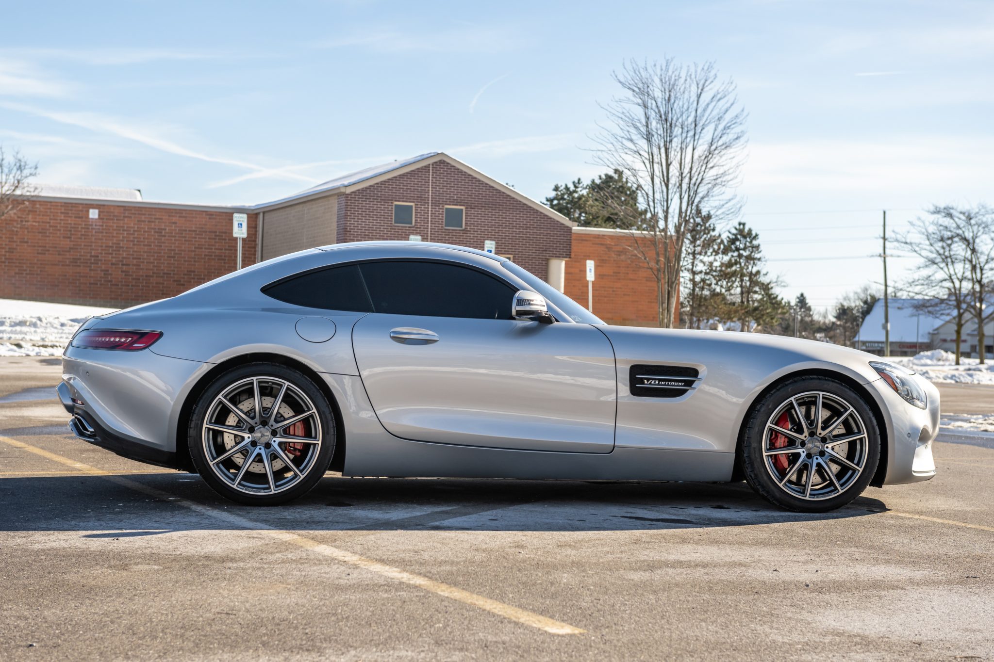 Forged 19″ front and 20″ rear AMG wheels are mounted with 265/35 front and 295/30 rear Michelin Pilot Super Sport tires, the fronts of which were reportedly recently replaced. Adaptive dampers were equipped from the factory, and stopping power is provided by red AMG-branded calipers over slotted and cross-drilled rotors.