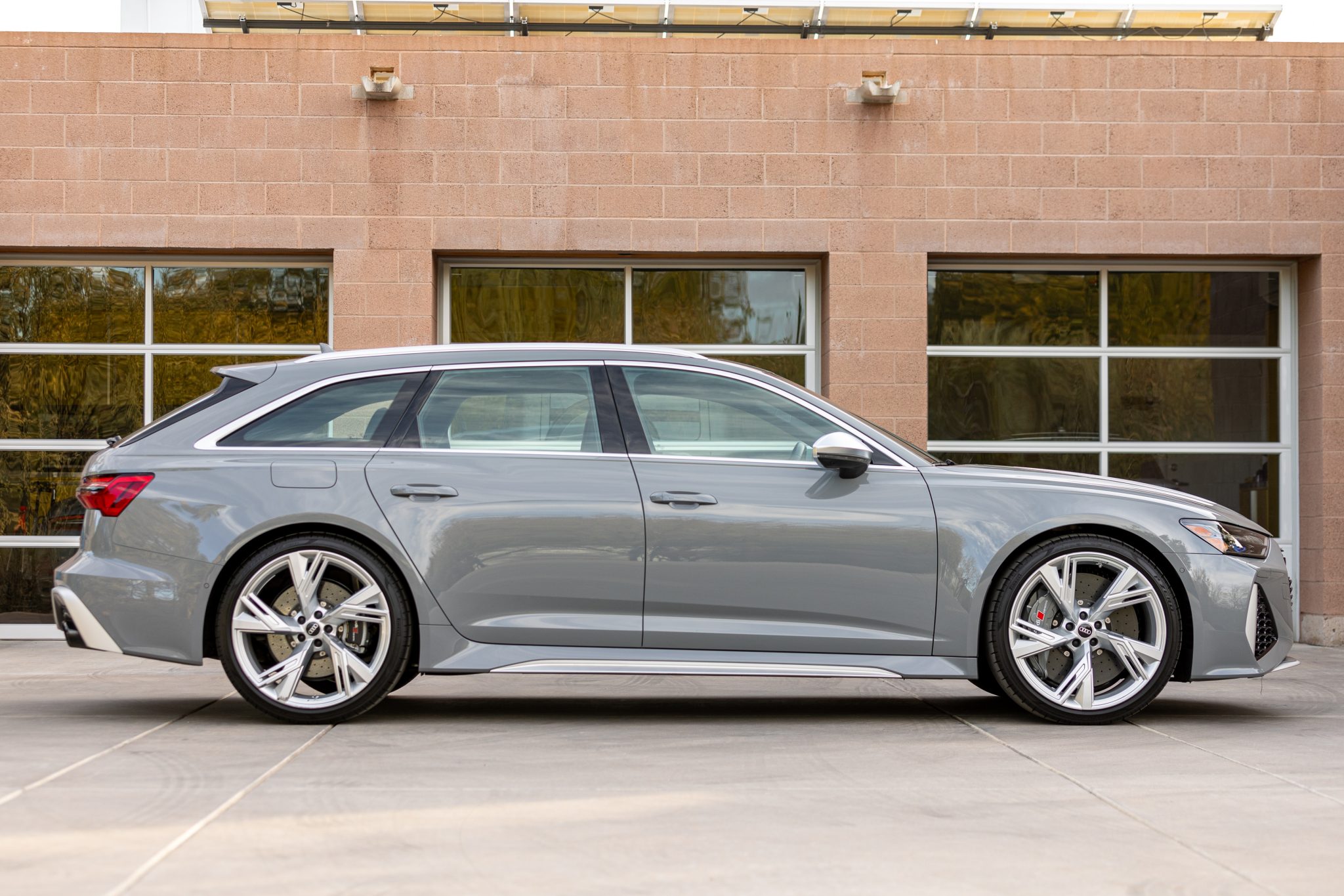 V-spoke 22″ wheels are mounted with 285/30 Pirelli P Zero tires. The car has a regenerative ceramic brake system and driver-adjustable adaptive sport-tuned suspension.