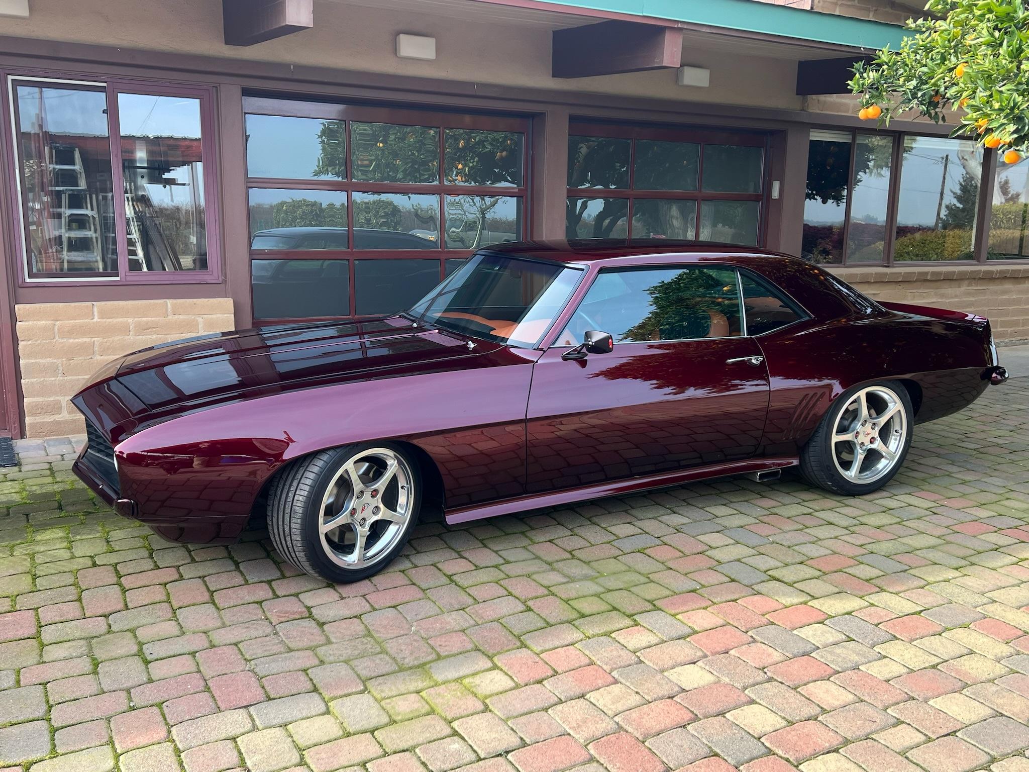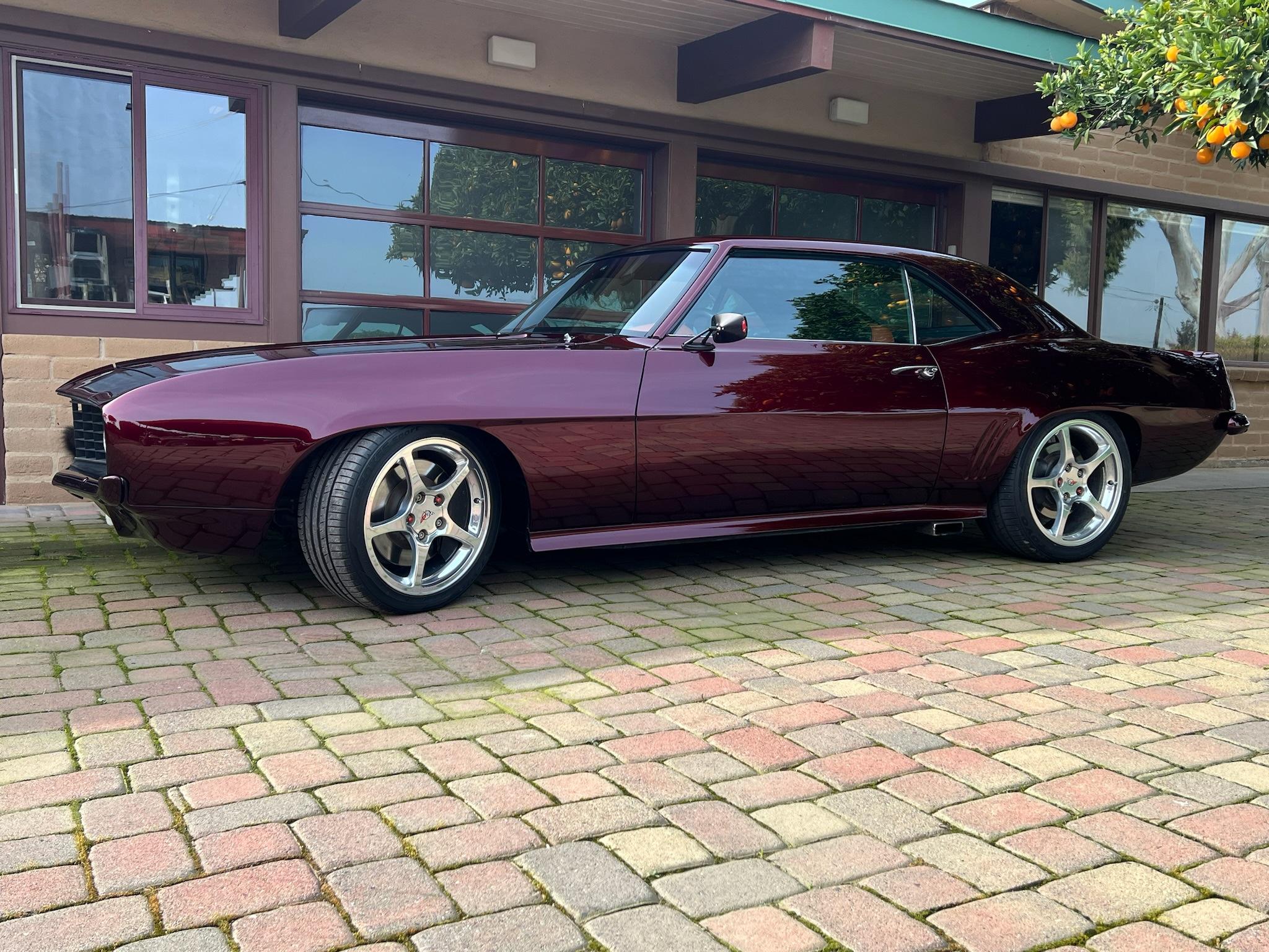 Corvette five-spoke 17″ and 18″ wheels are mounted with 235/40 front and 255/40 rear Toyo Proxes tires. Ridetech adjustable coilovers are fitted out back, and four-wheel disc brakes are equipped.