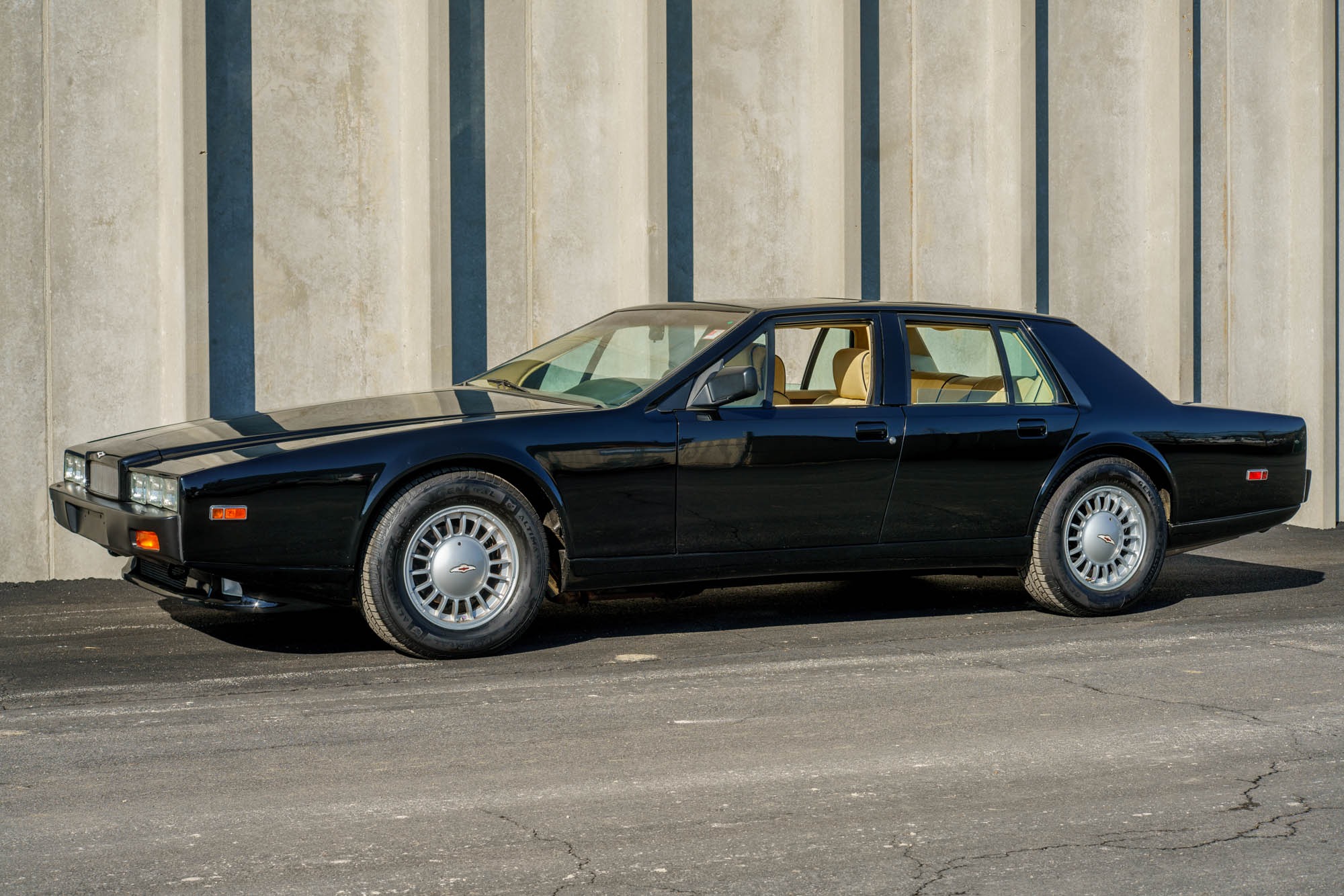 Silver-finished 16″ alloy wheels wear Lagonda-branded centers and are mounted with 235/60 General Altimax RT43 tires that show 2021 date codes. A space saver spare wheel is stored in the trunk. The car rides on a four-wheel independent suspension and stopping power is provided by four-wheel ventilated disc brakes, the rear of which are mounted inboard of the hubs.