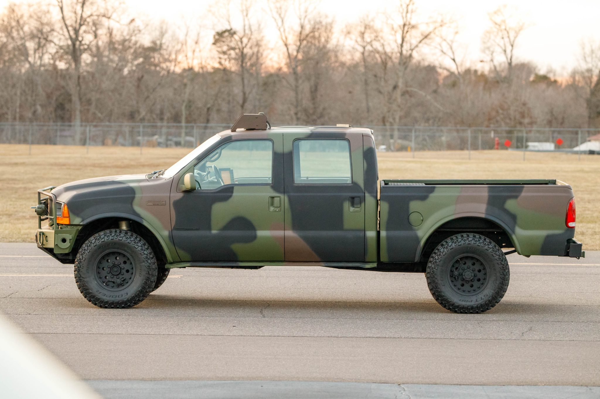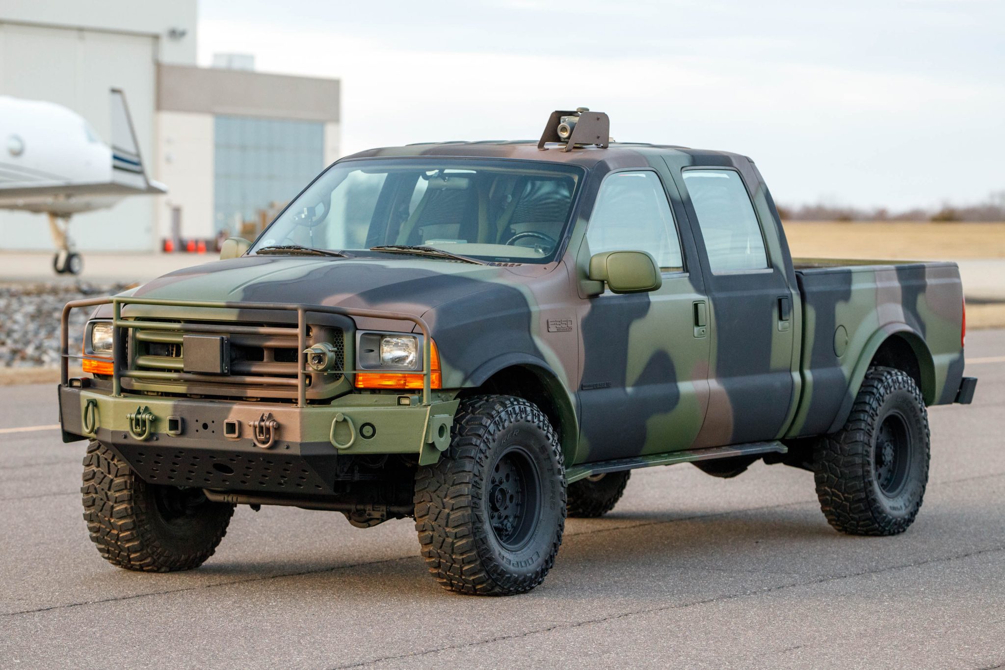 Black-finished 17″ beadlock-capable wheels are mounted with Cooper Discoverer STT Pro tires. The heavy-duty suspension is fitted with manually controlled air springs and allows for 30″ of water-fording capability. Stopping power is provided by four-wheel discs with ABS. The central tire inflation system has been disabled and the seller notes a front air spring leak was repaired in preparation for the sale.