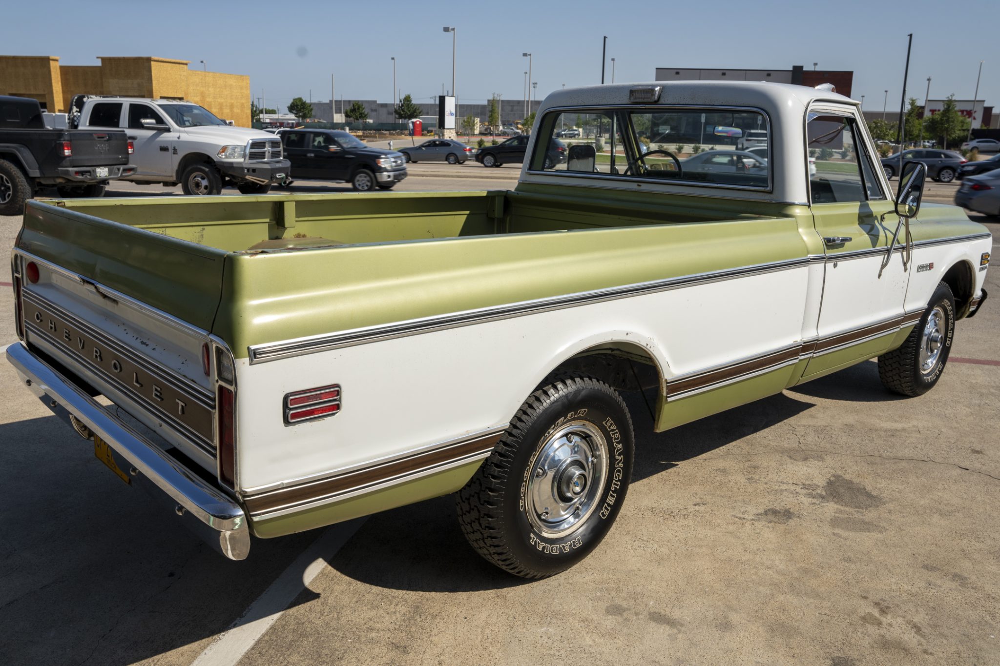 The 15″ steel wheels feature chrome covers and are mounted with 235/75 Goodyear Wrangler Radial tires that were mounted by the selling dealer. The truck is equipped with power steering, and braking is provided by power-assisted front discs and rear drums. The rear drum brakes were adjusted, the wheel cylinders were replaced, and the brake fluid was serviced under current ownership, at which time the shocks were replaced.