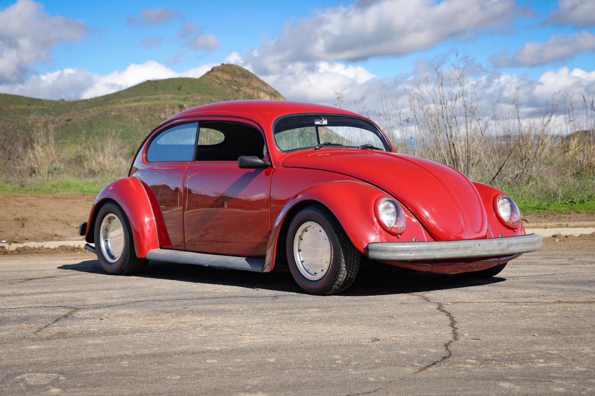 The 13″ alloy wheels wear custom-fabricated spun aluminum covers and are mounted with sidewall-shaved redline tires. The car rides on a lowered suspension, and stopping power is provided by drum brakes at all four corners.