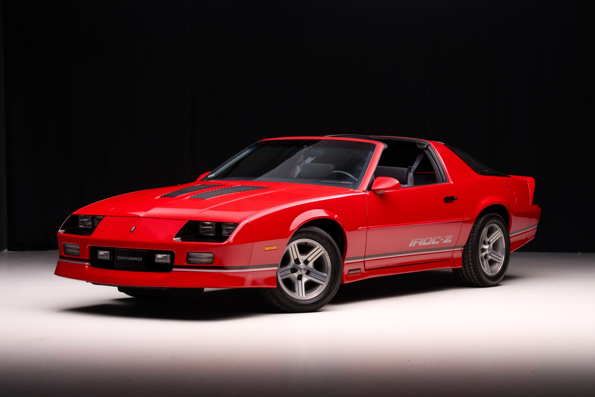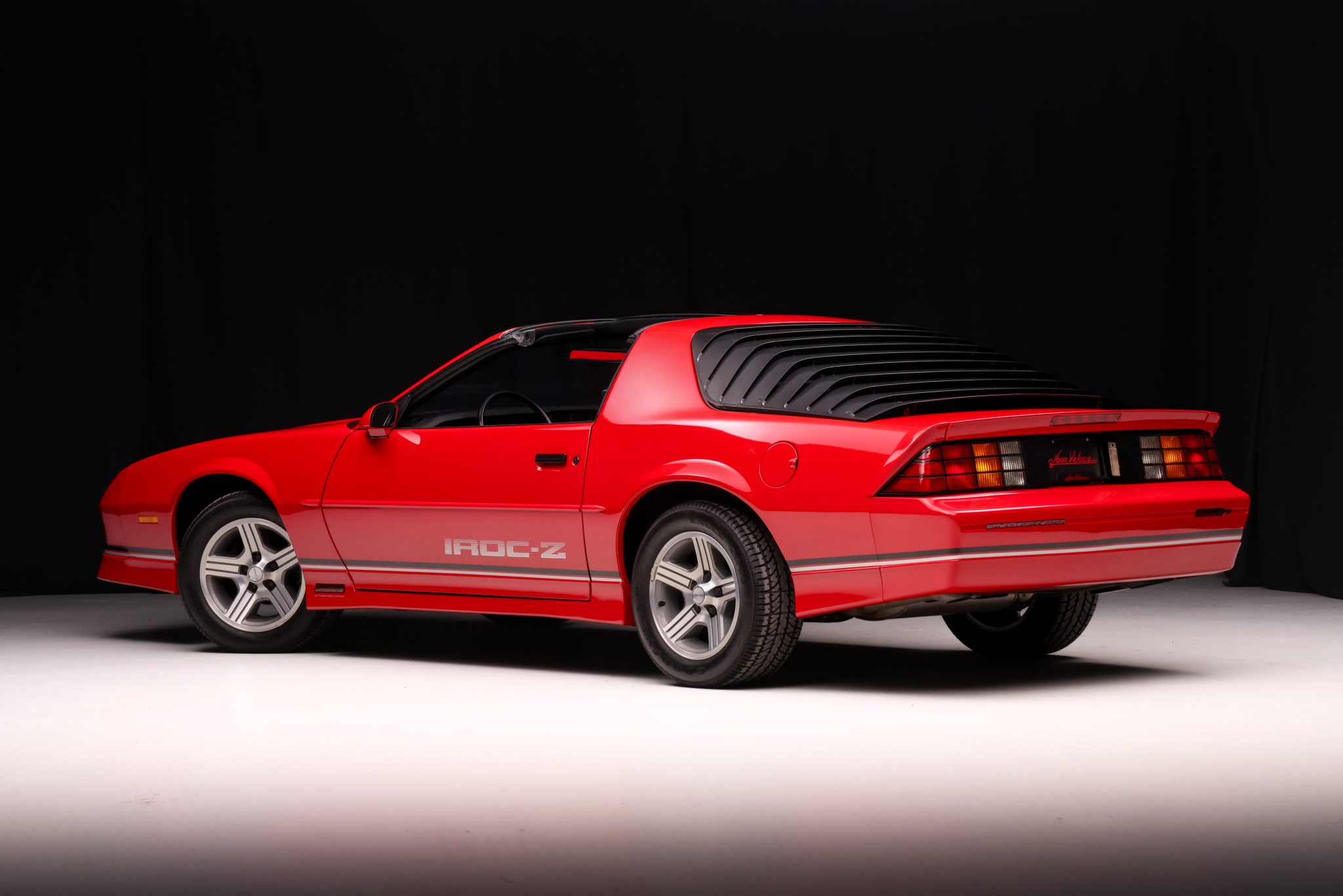 The 16″ cast aluminum IROC wheels are mounted with Goodyear Eagle ZR50 tires. Stopping power is provided by optional four-wheel discs. The car is equipped with power steering as well as a performance ride and handling suspension.
