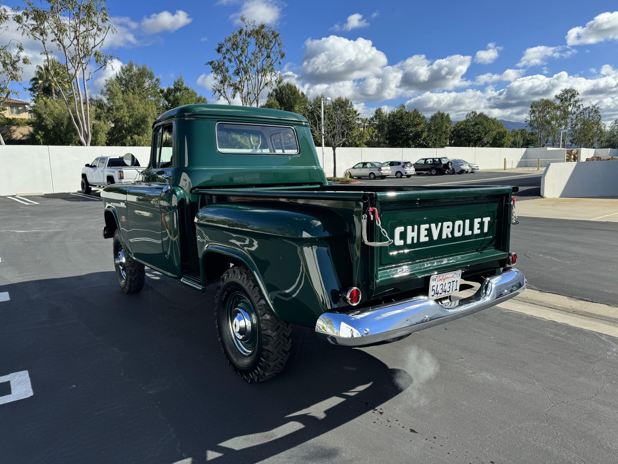 Body-color 16″ steel wheels wear bright hub caps and are mounted with 7.50-16″ Power King Extra Traction tires, while a spare is secured underneath. The truck is equipped with manually locking front hubs, and stopping power is provided by unassisted four-wheel drum brakes.