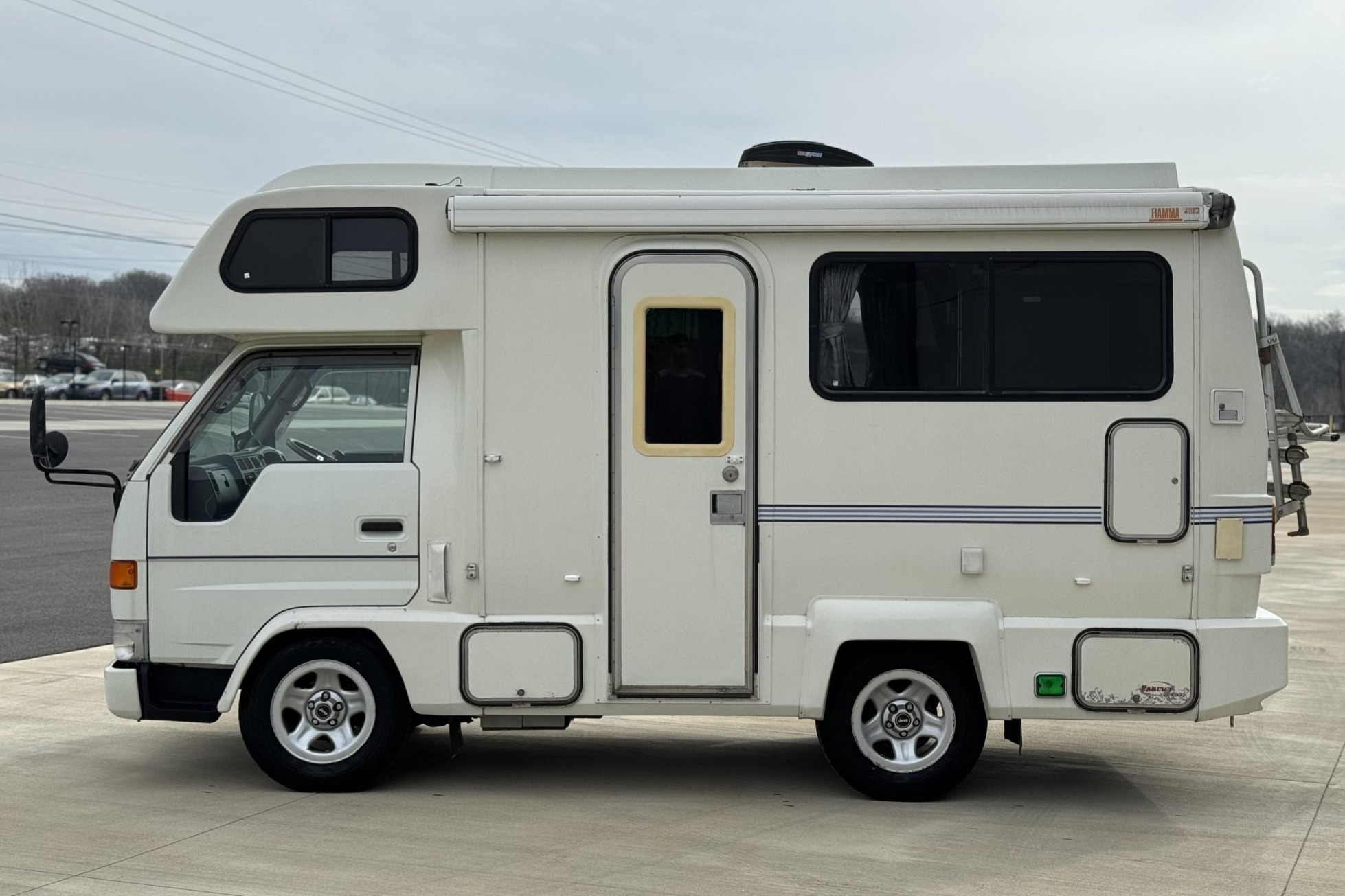 Five-spoke 15″ Jeep wheels show corrosion and are mounted with 195/80 Bridgestone Blizzak tires. Braking is handled by front discs and rear drums.