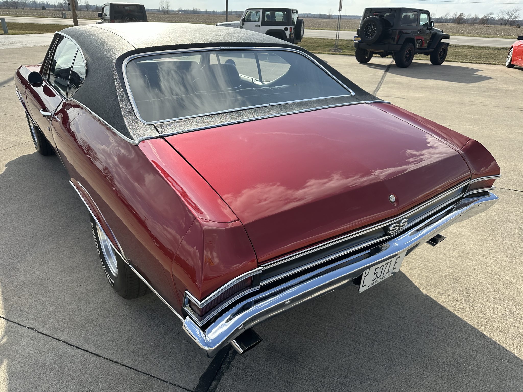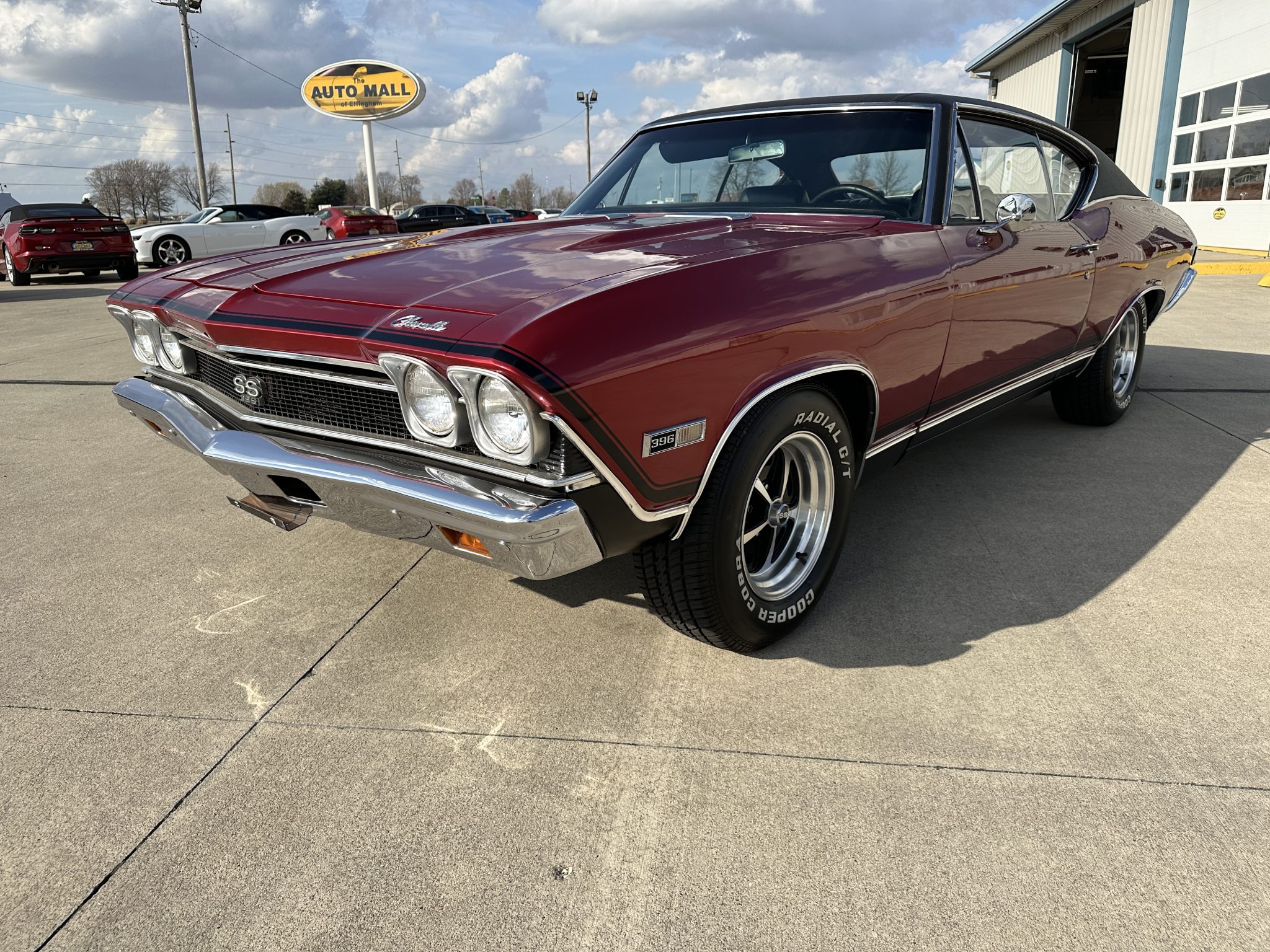 The 15″ wheels are mounted with Cooper Cobra Radial G/T tires measuring 235/70. Braking is handled by power-assisted front discs and rear drums. The car is equipped with power steering.
