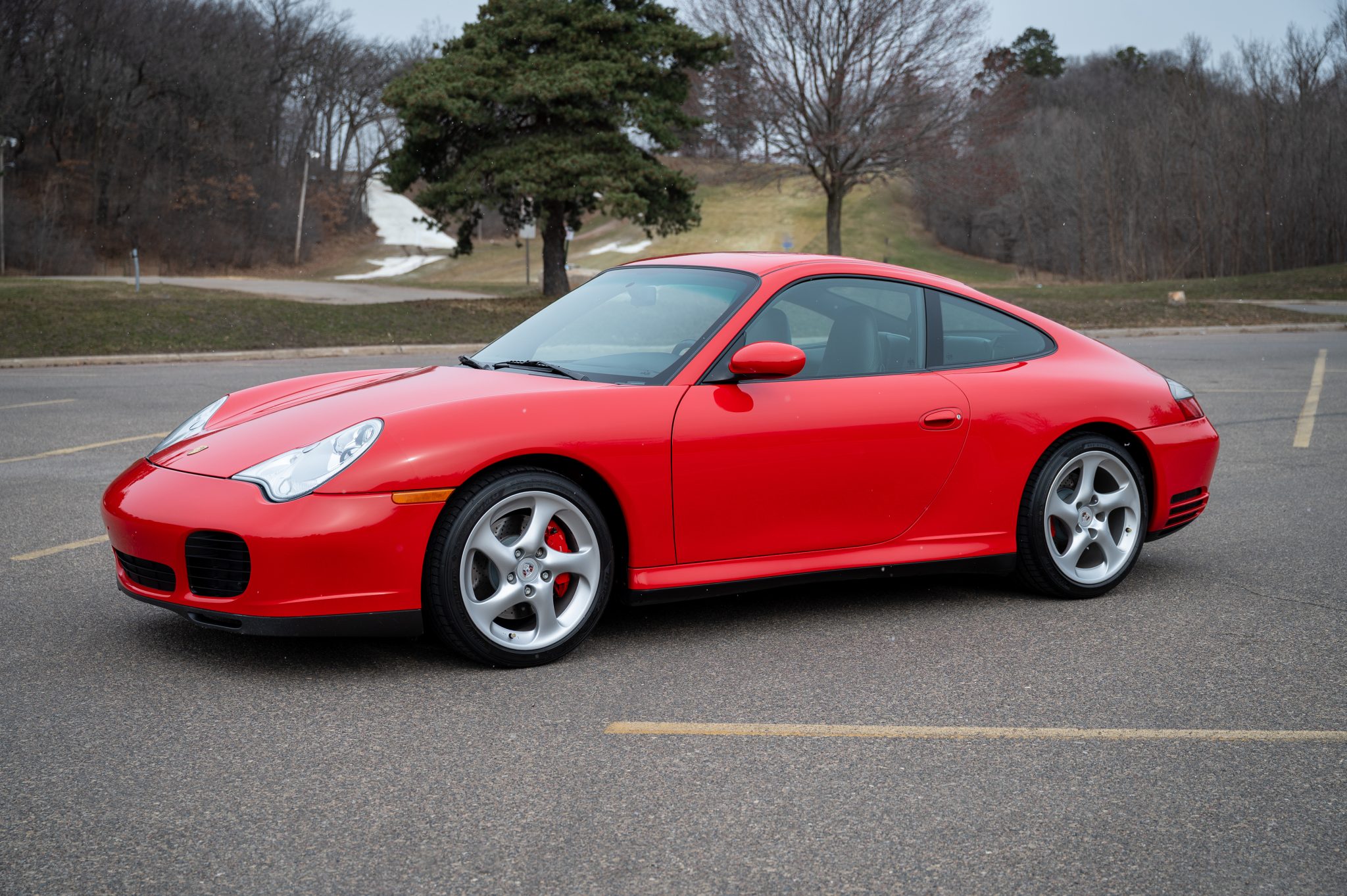 The 18″ Turbo-look wheels are mounted with Sumitomo HTR Z5 tires that were installed in March 2021. The car is equipped with Porsche Stability Management (PSM) and an Automatic Brake Differential (ABD). Braking is from red calipers over ventilated and cross-drilled rotors at all four corners. The right-front upper strut mount is torn per a March 2024 inspection report, and the parking brake requires adjustment.