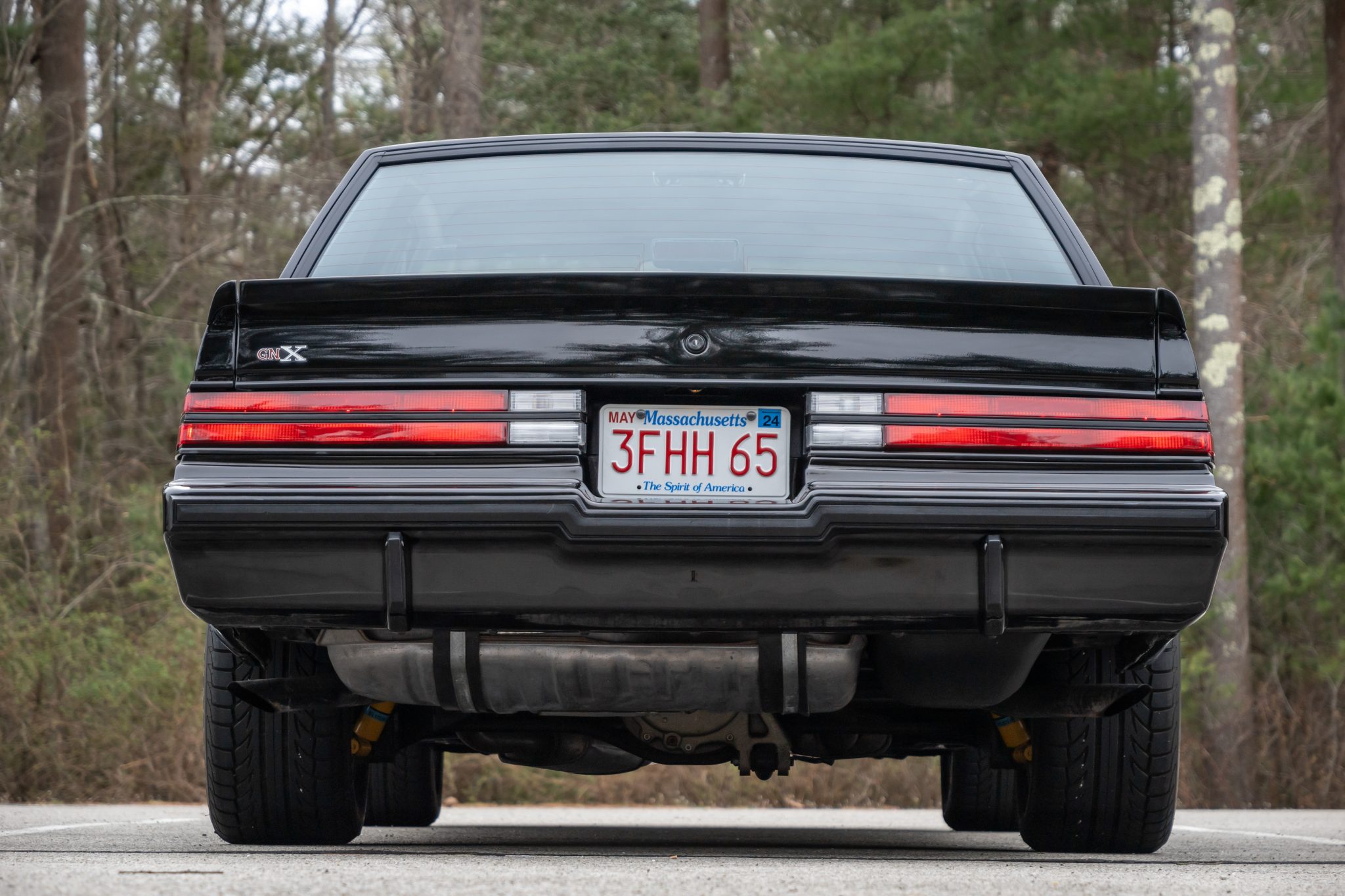 Factory 16″ cross-lace wheels feature GNX-branded center caps along with chrome trim rings and are mounted with BFGoodrich g-Force Sport tires that were mounted in 2020. The GNX features front suspension components from the contemporary Grand National, and upgraded rear components include a Panhard rod, torque arm, and an additional frame cross member. Braking is handled by power-assisted front discs and rear drums, and a second set of wheels and tires is included in the sale.