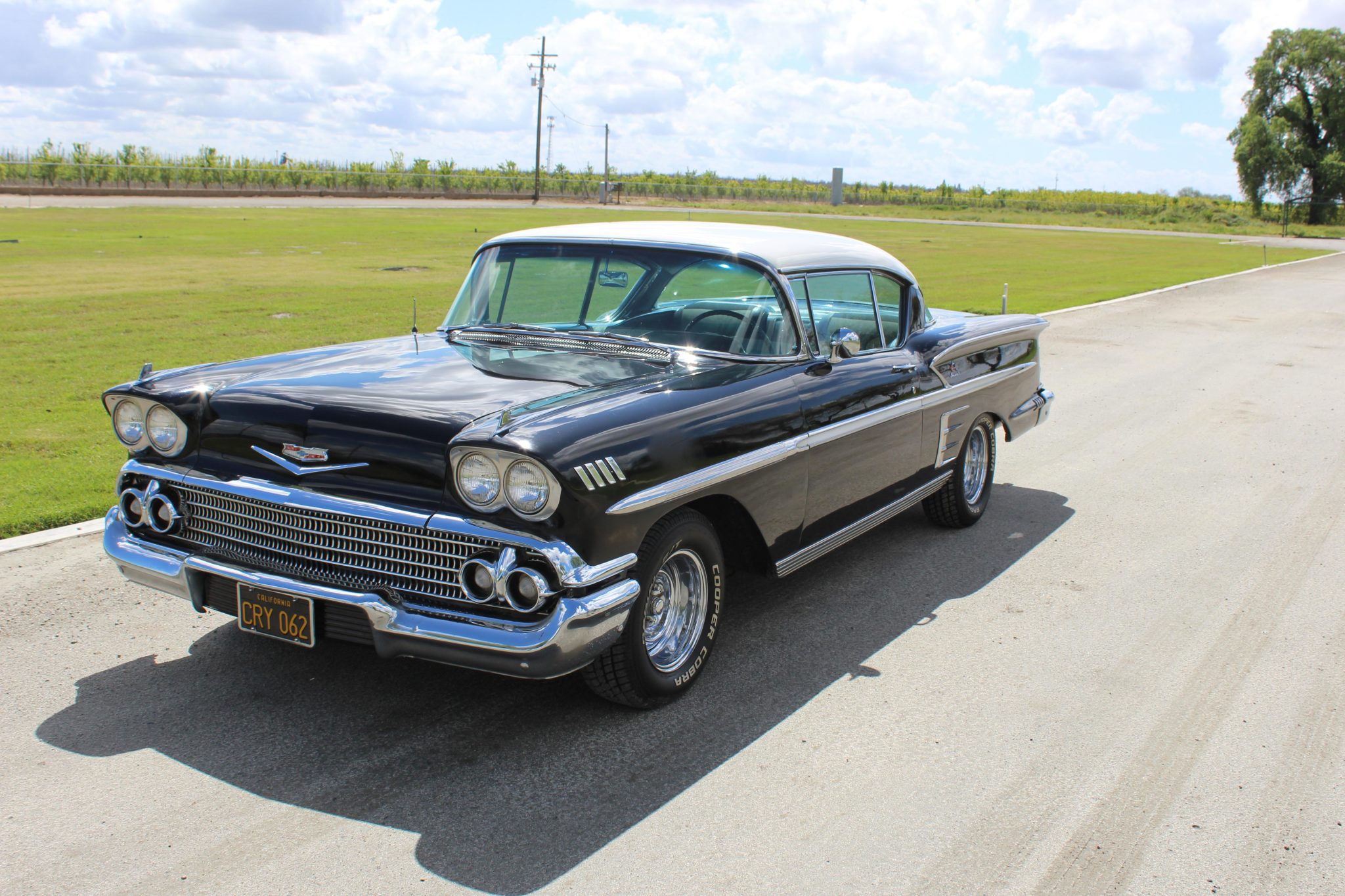 The 14″ chrome wheels are mounted with 215/70 Cooper Cobra Radial G/T white-letter tires that were installed in 2020. Braking is provided by drums at each corner.