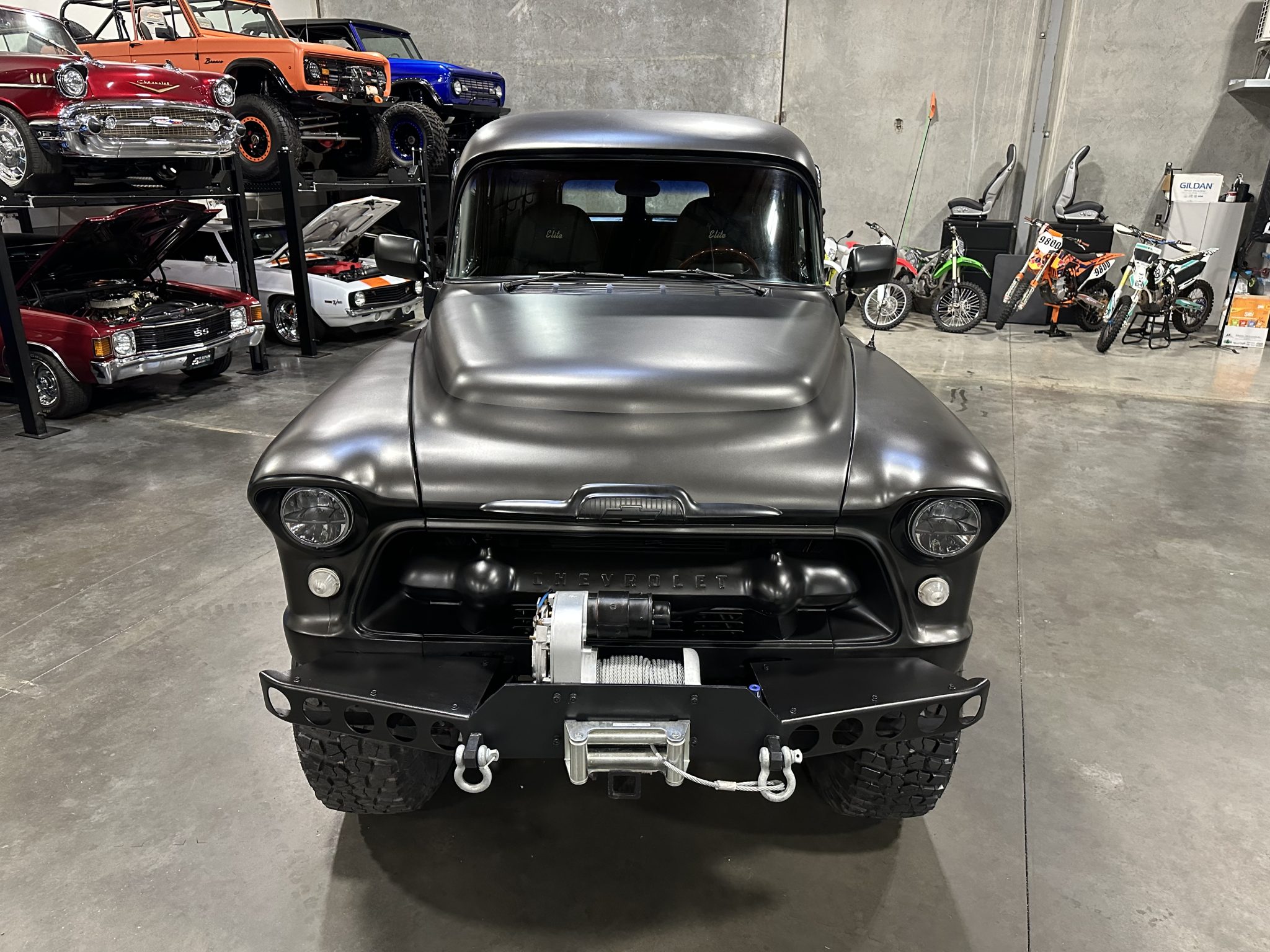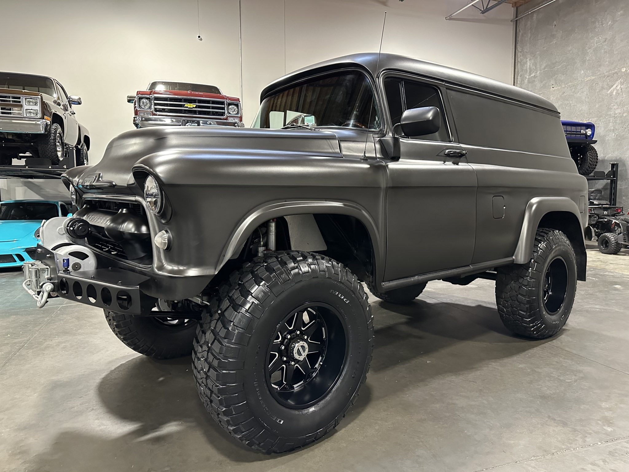 Black-finished 20″ Ultra Motorsports alloy wheels are mounted with 42×14.5″ BFGoodrich Mud-Terrain T/A KM2 tires. The truck is equipped with Warn manually locking front hubs, Rancho shocks, and four-wheel disc brakes.