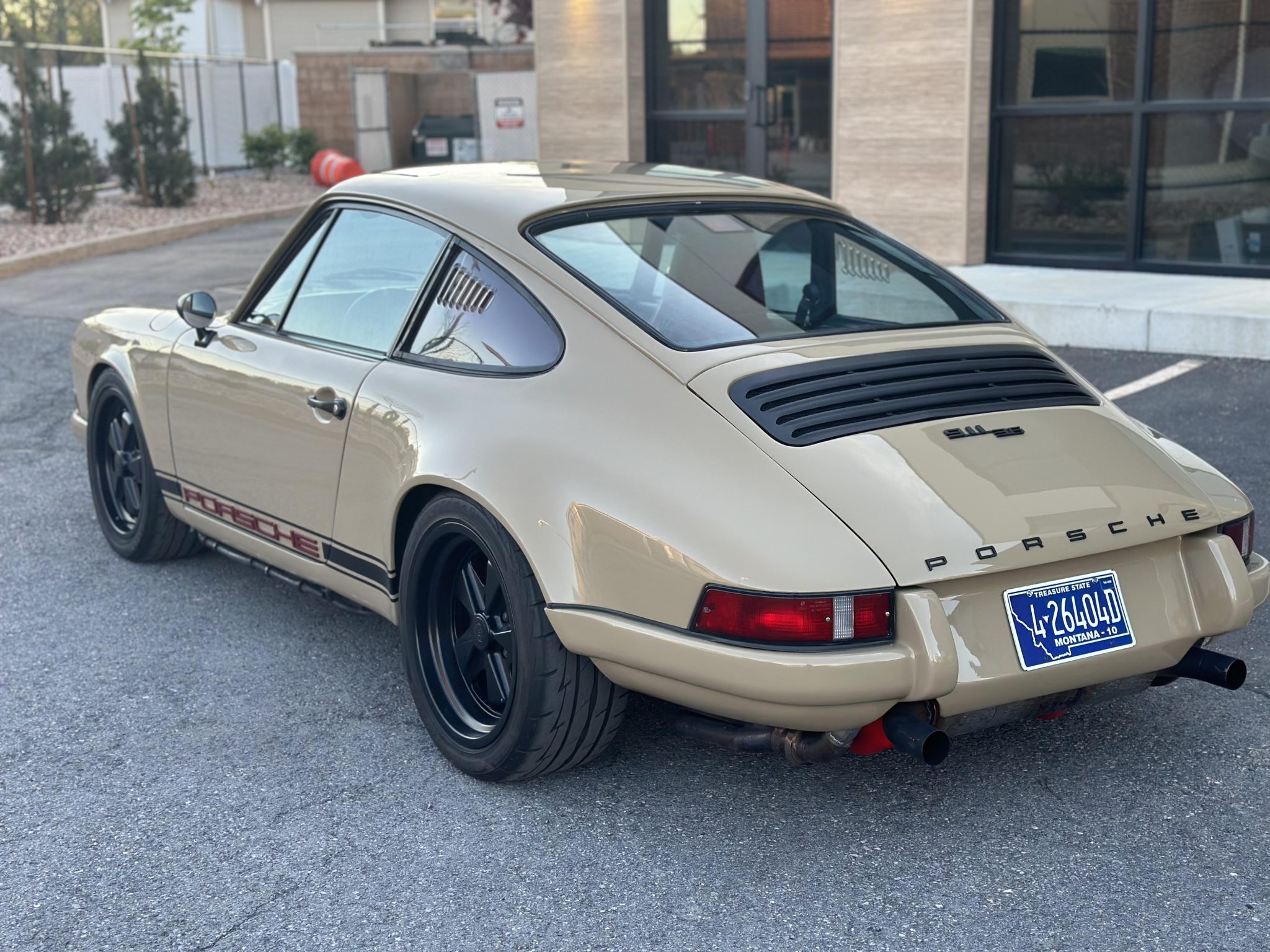 Black 17″ Fuchs-style wheels are wrapped in 205/55 front and 255/50 rear Firestone Firehawk Indy 500 tires. The suspension features Bilstein front struts and adjustable rear coilovers. Braking is handled by 996 Turbo-sourced calipers over cross-drilled rotors at all four corners.