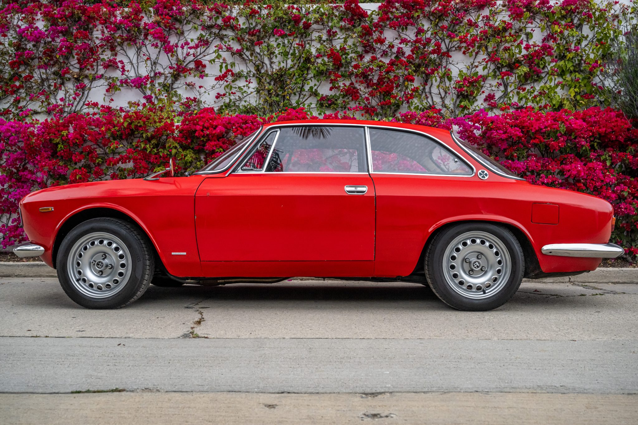 Silver 15″ Alfaholics GTA-style alloy wheels are mounted with 185/60 Pirelli P4 Four Season Plus tires, and a 14″ spare with an older Continental tire is stored in the trunk. The suspension has been modified with an Aflaholics front sway bar as well as their Fast Road springs paired with Koni yellow front and red rear shocks. The four-wheel disc brakes were reportedly overhauled under prior ownership including replacement of the booster and calipers.