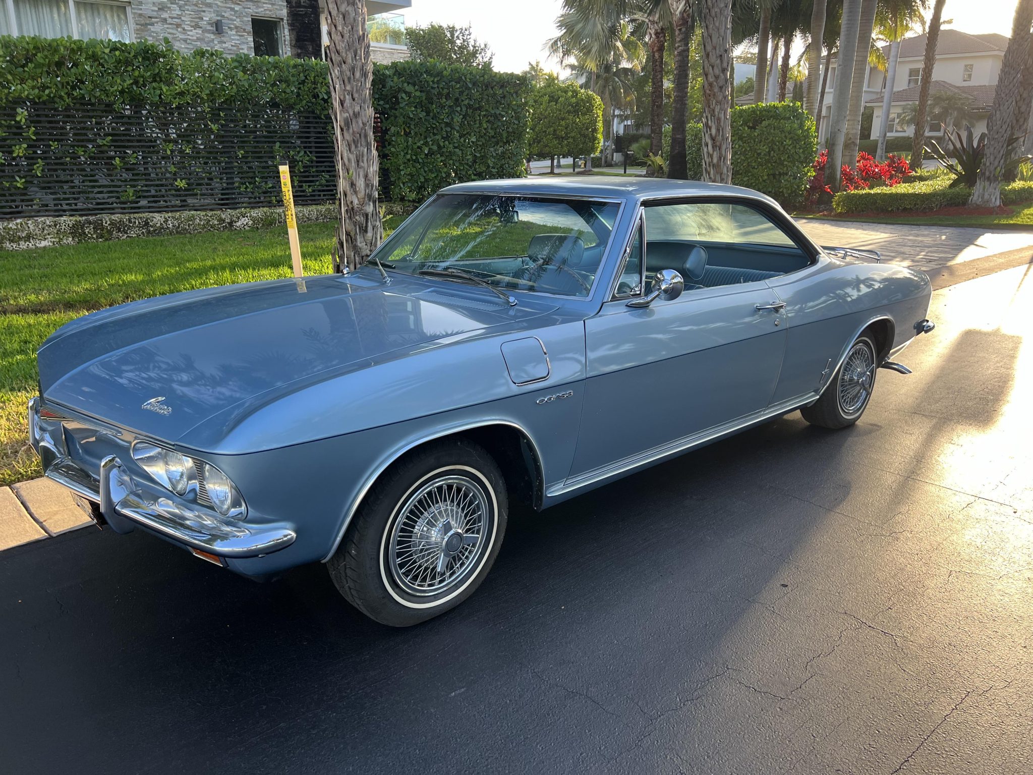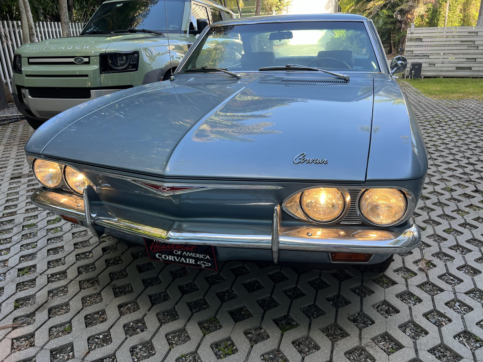 The 13″ steel wheels feature simulated wire wheel covers and knock-off hubs and are mounted with BFGoodrich Silvertown whitewall radial tires. A full-size spare is located in the engine compartment. The Corvair utilized a fully independent suspension, and stopping power is provided by front and rear drum brakes. A quick-ratio steering box is said to have been fitted during the refurbishment.