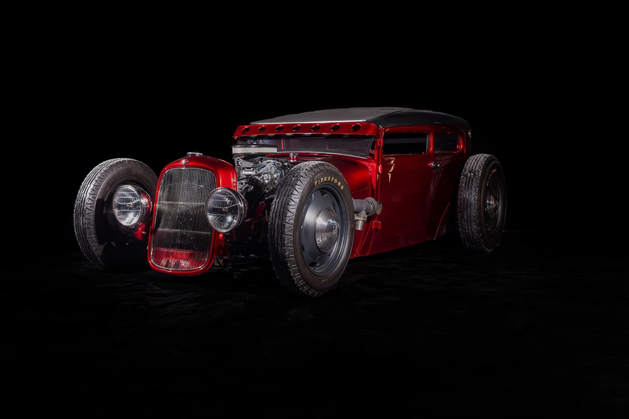 The 18” wheels are meant to emulate Divco truck wheels and are mounted with 5.5” front and 7″ rear Coker Excelsior tires. Suspension incorporates a dropped axle up front and coilover shocks out back. Braking is provided by vented front discs and rear drums.