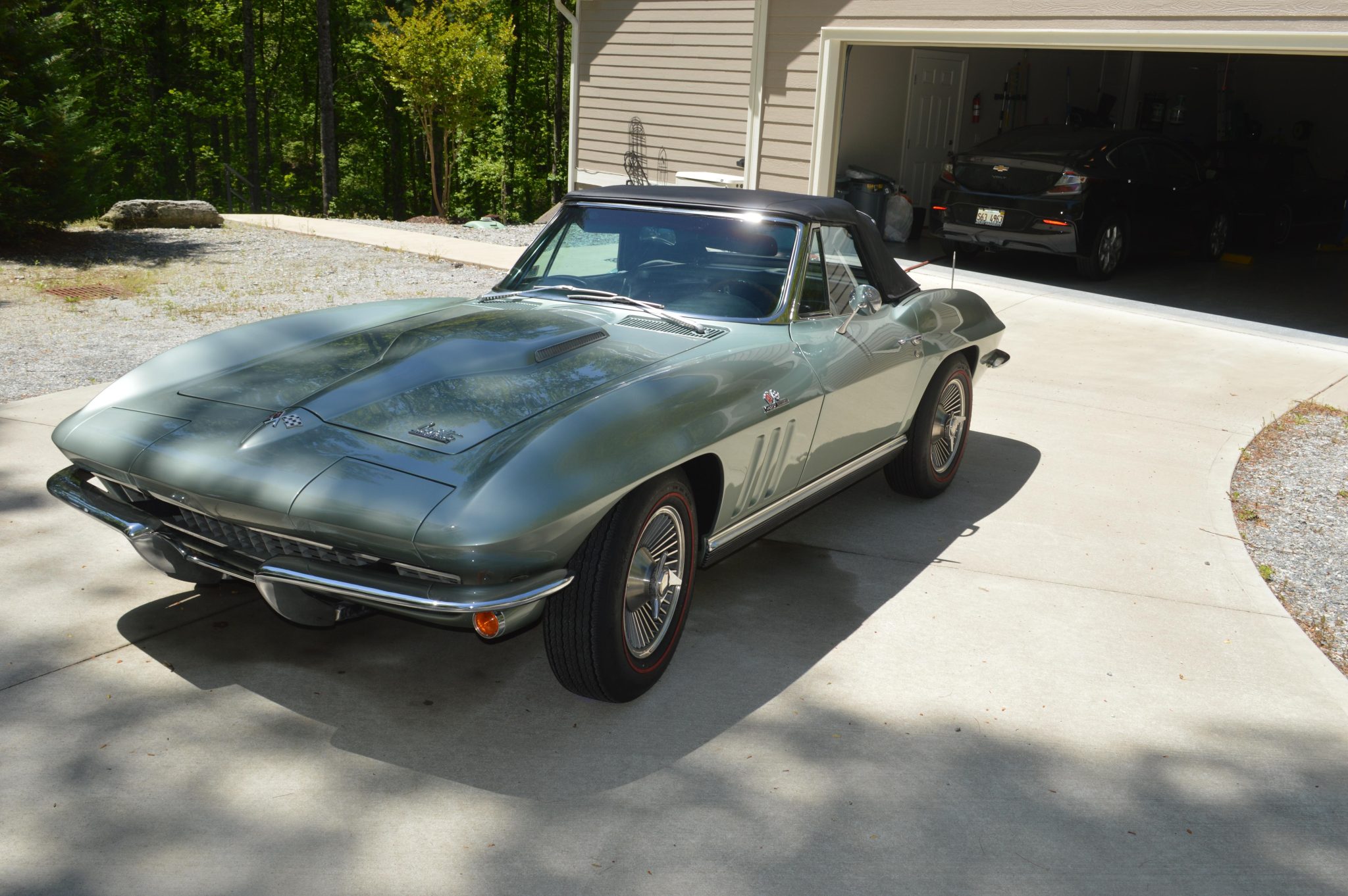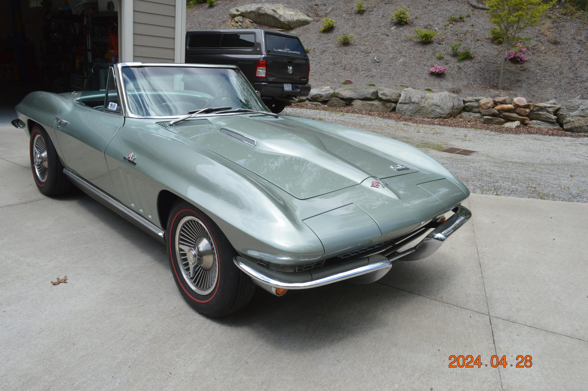 The 15″ Turbine-style aluminum wheels feature knock-off spinners and are mounted with Firestone redline tires. The C2 Corvette had standard fully independent suspension, with upper and lower control arms at the front and a three-link setup with a transverse leaf spring at the rear. Braking is handled by four-wheel discs.