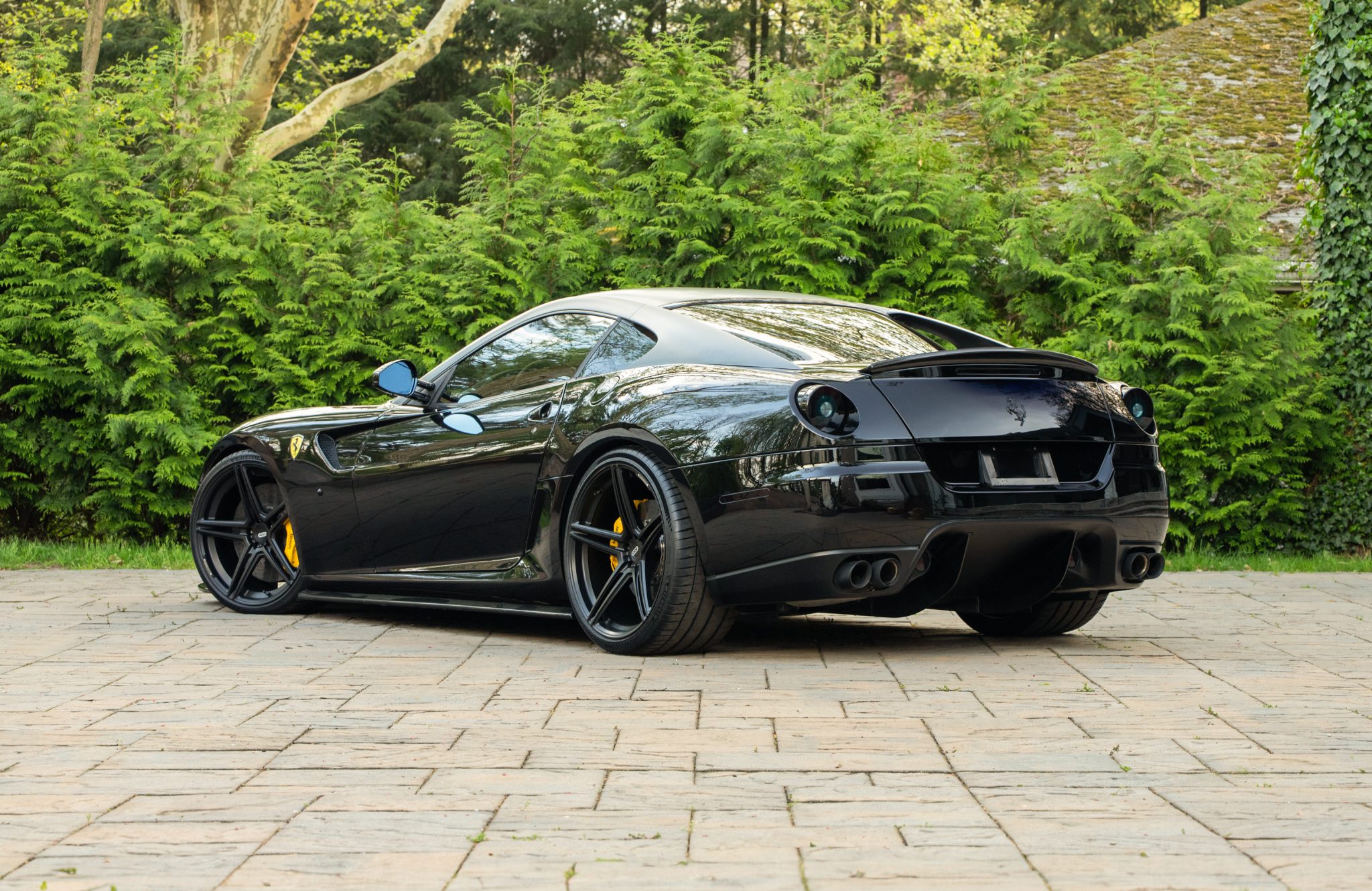 Black-finished 21″ and 22″ inch ADV.1 wheels are wrapped in 295/25 front and 335/25 rear Michelin Pilot Sport 4S tires that were installed in February 2024. Stopping power is provided by yellow Ferrari-branded multi-piston brake calipers over cross-drilled and ventilated ceramic-composite rotors at each corner. The car has been fitted with Novitec Sport lowering springs, and the ball joints, tie rod ends, and all four struts were replaced in February 2024.