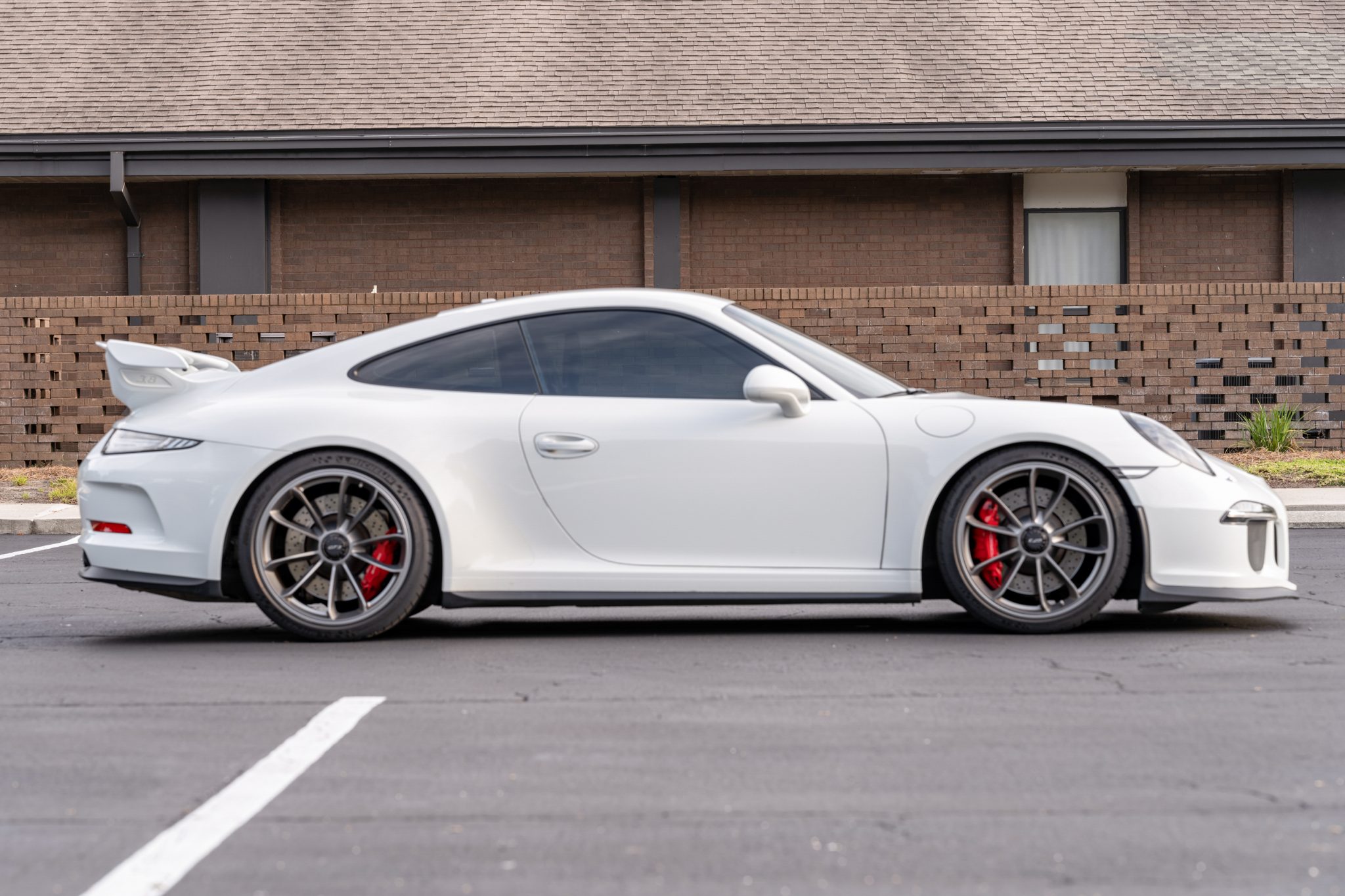 The 20″ center-lock alloy wheels are mounted with Michelin Pilot Sport Cup 2 tires measuring 245/35 up front and 305/30 at the rear. Braking is handled by red Porsche-branded calipers over cross-drilled and ventilated discs. The car is equipped with a front-axle lift system, rear-axle steering, and Porsche Active Suspension Management.