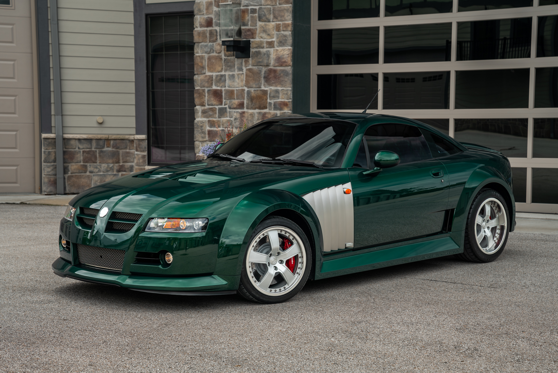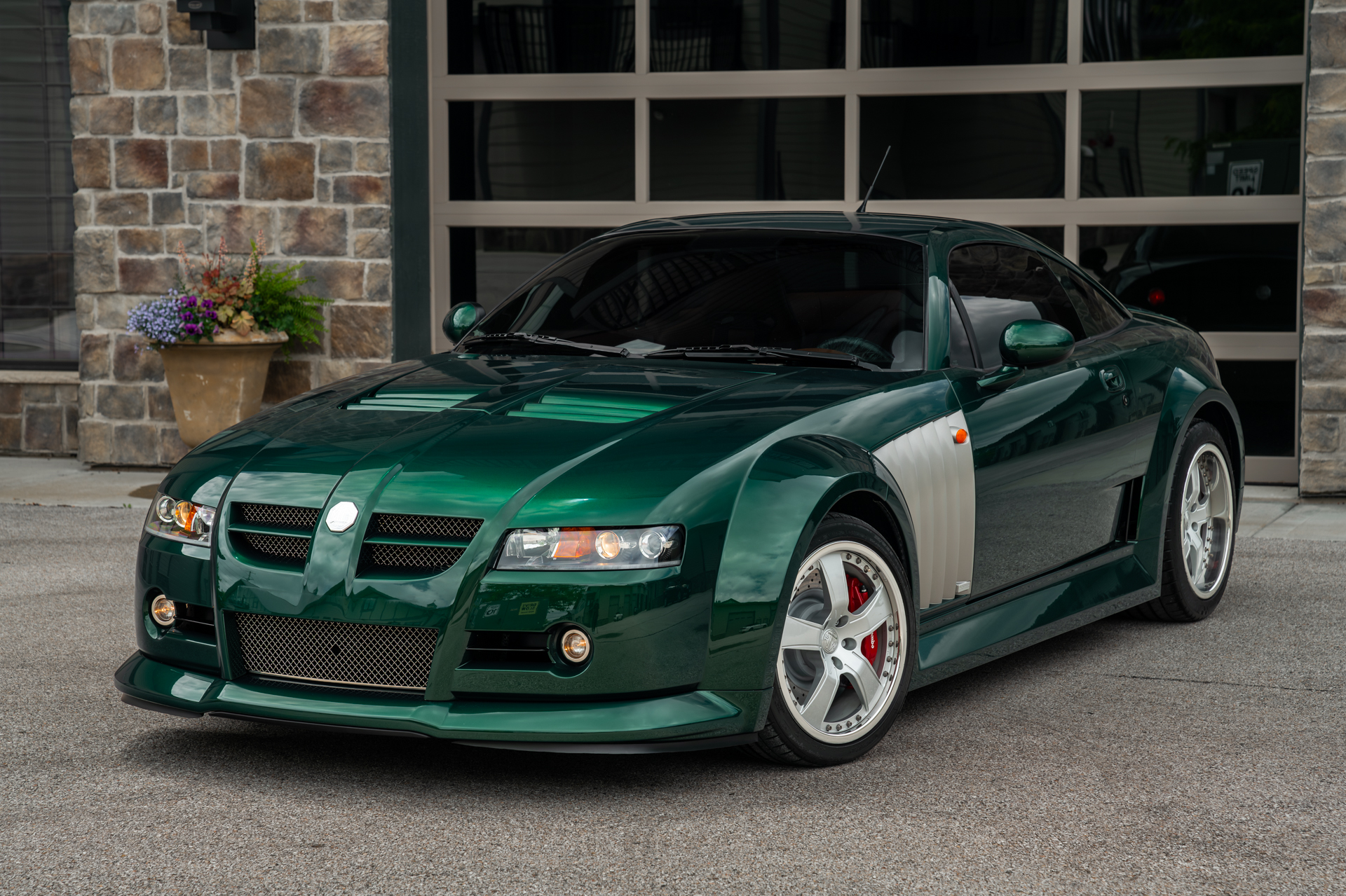 This example is finished in British Racing Green and features contrasting silver fender vents as well as a front splitter, projector headlights, front and rear foglights, power-folding mirrors, green-tinted windows, a rear diffuser, and chrome exhaust outlets that exit through the rear bumper.