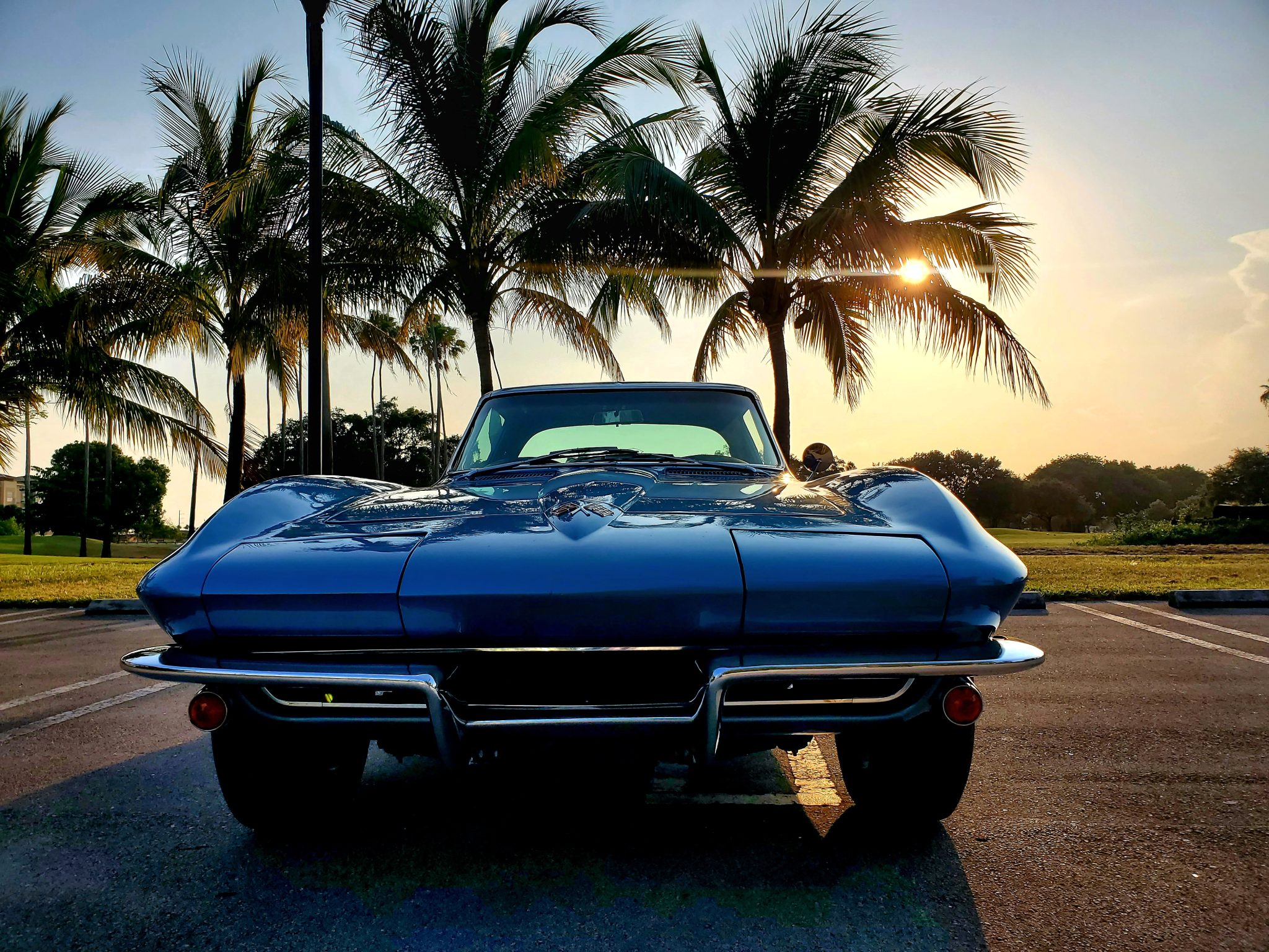 The 15″ American Racing Torq Thrust wheels are mounted with Cooper Lifeliner radial tires. The C2 Corvette featured standard independent suspension, and this example is equipped with power steering and four-wheel disc brakes.