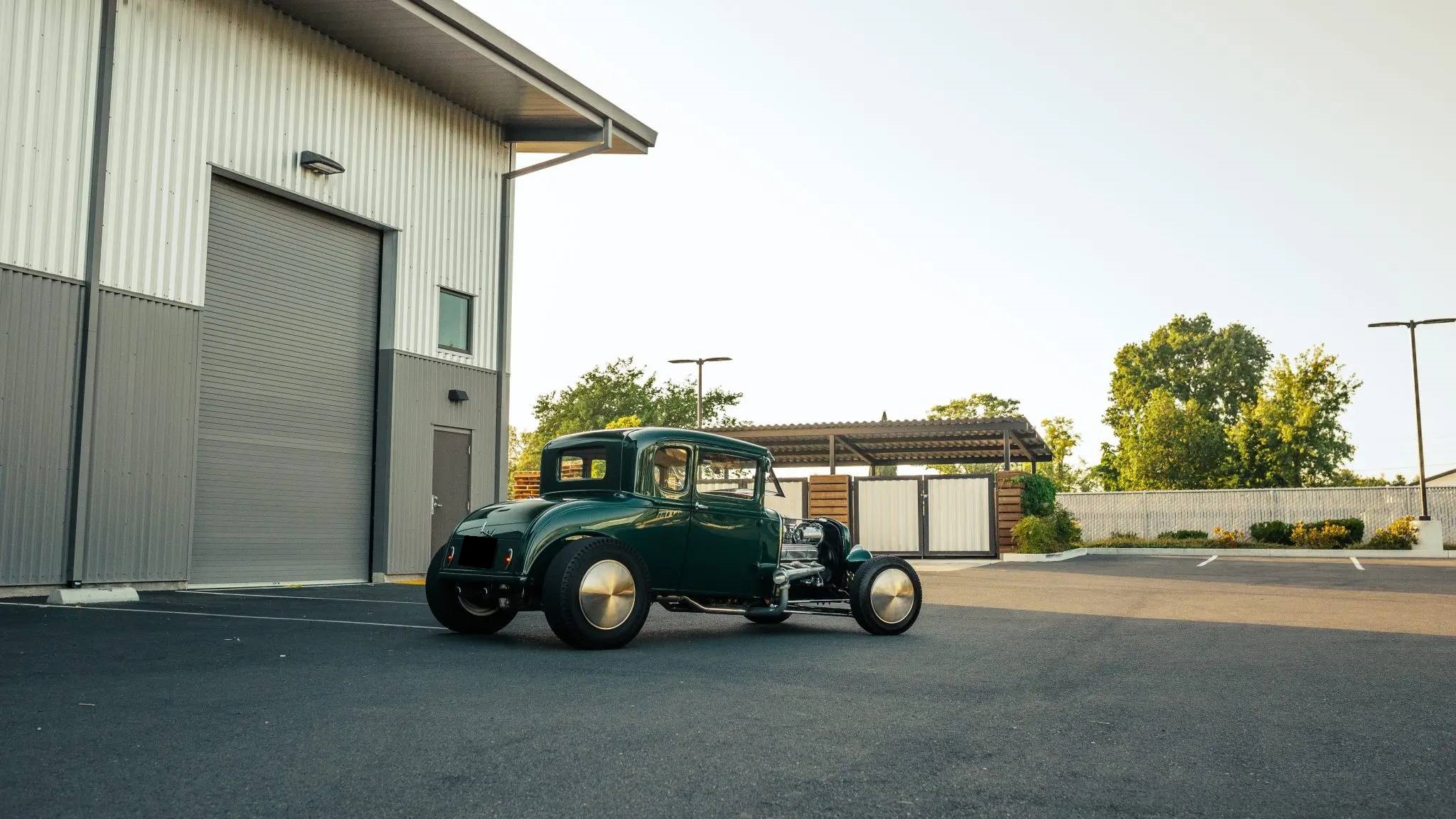 Steel 15″ wheels wear Moon-style disc hubcaps and are mounted with 195-width BFGoodrich tires up front and 8″ pie-crust slicks out back. Front suspension incorporates a dropped Bell axle with a transverse leaf spring, while the quick-change rear axle features a four-link setup and coilovers. Braking is provided by vented discs up front and drums out back. A chrome Vega-style steering box was installed in 2022.