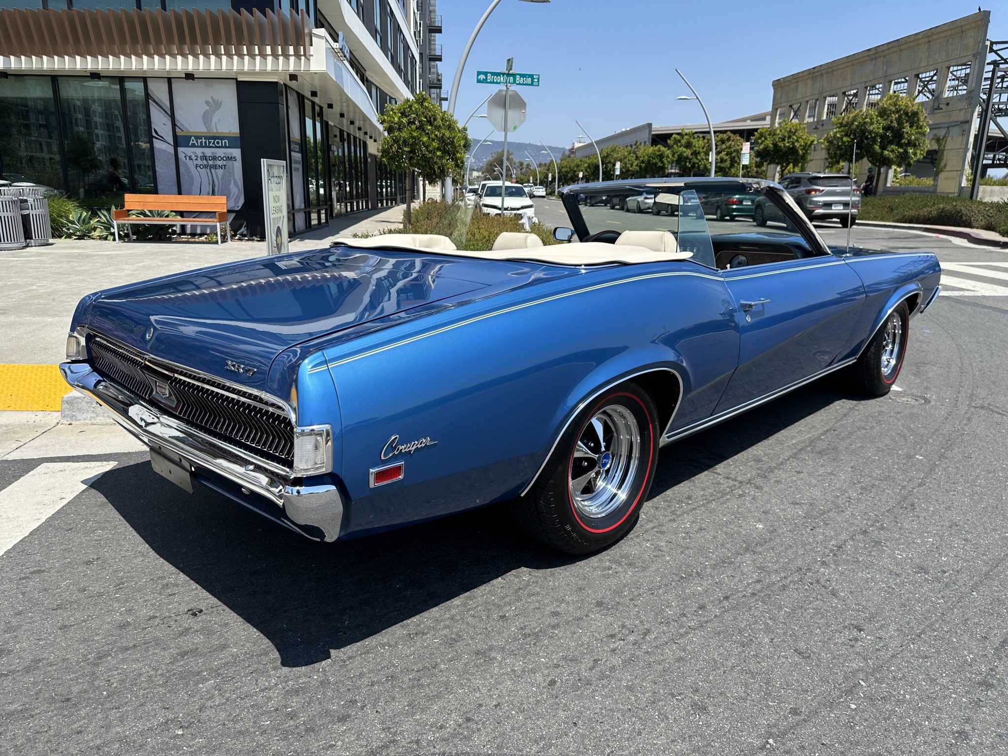The 14″ Magnum 500-style wheels are mounted with 225/70 BFGoodrich Silvertown redline tires. Stopping is provided by power-assisted front discs and rear drums.