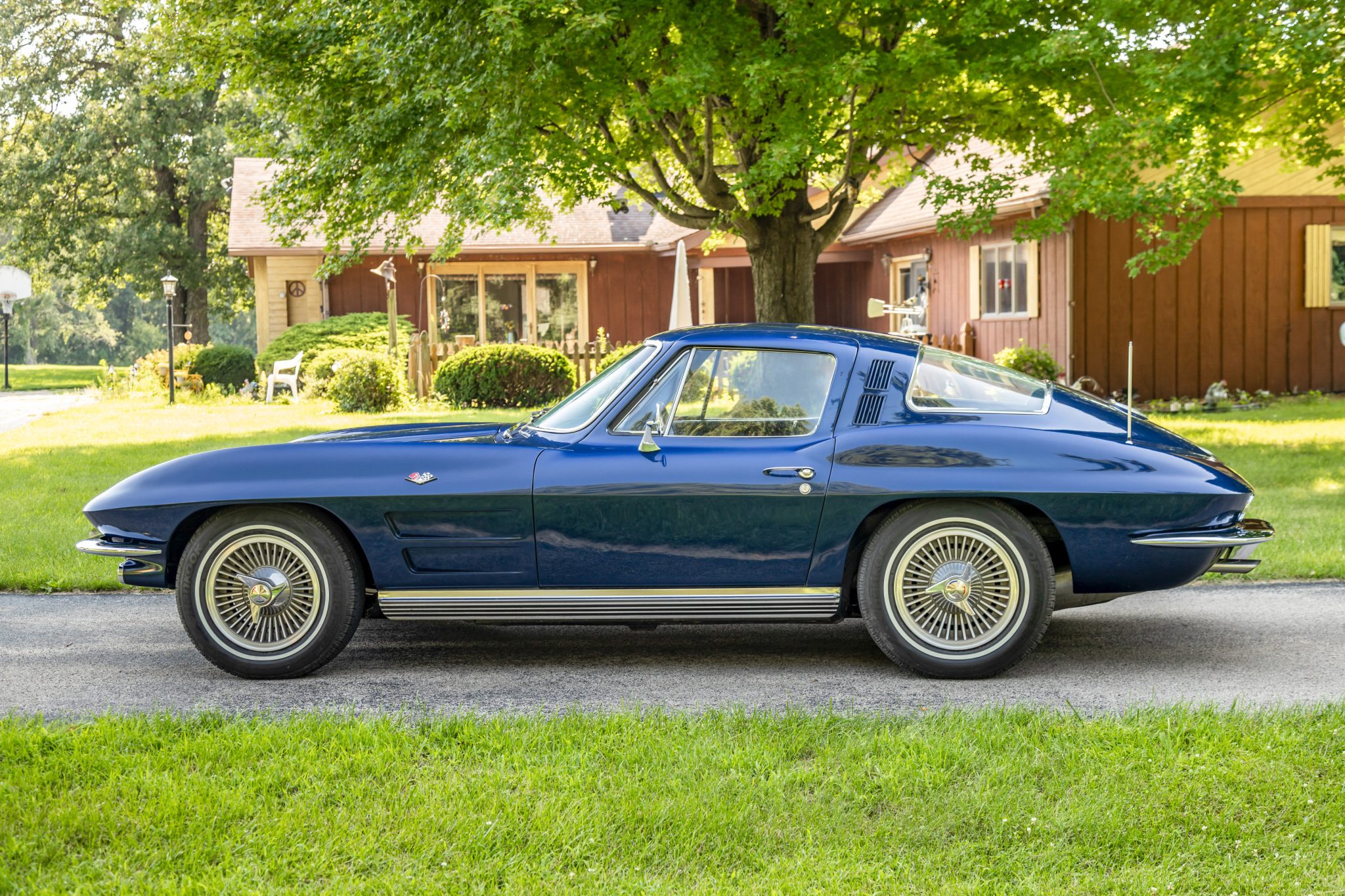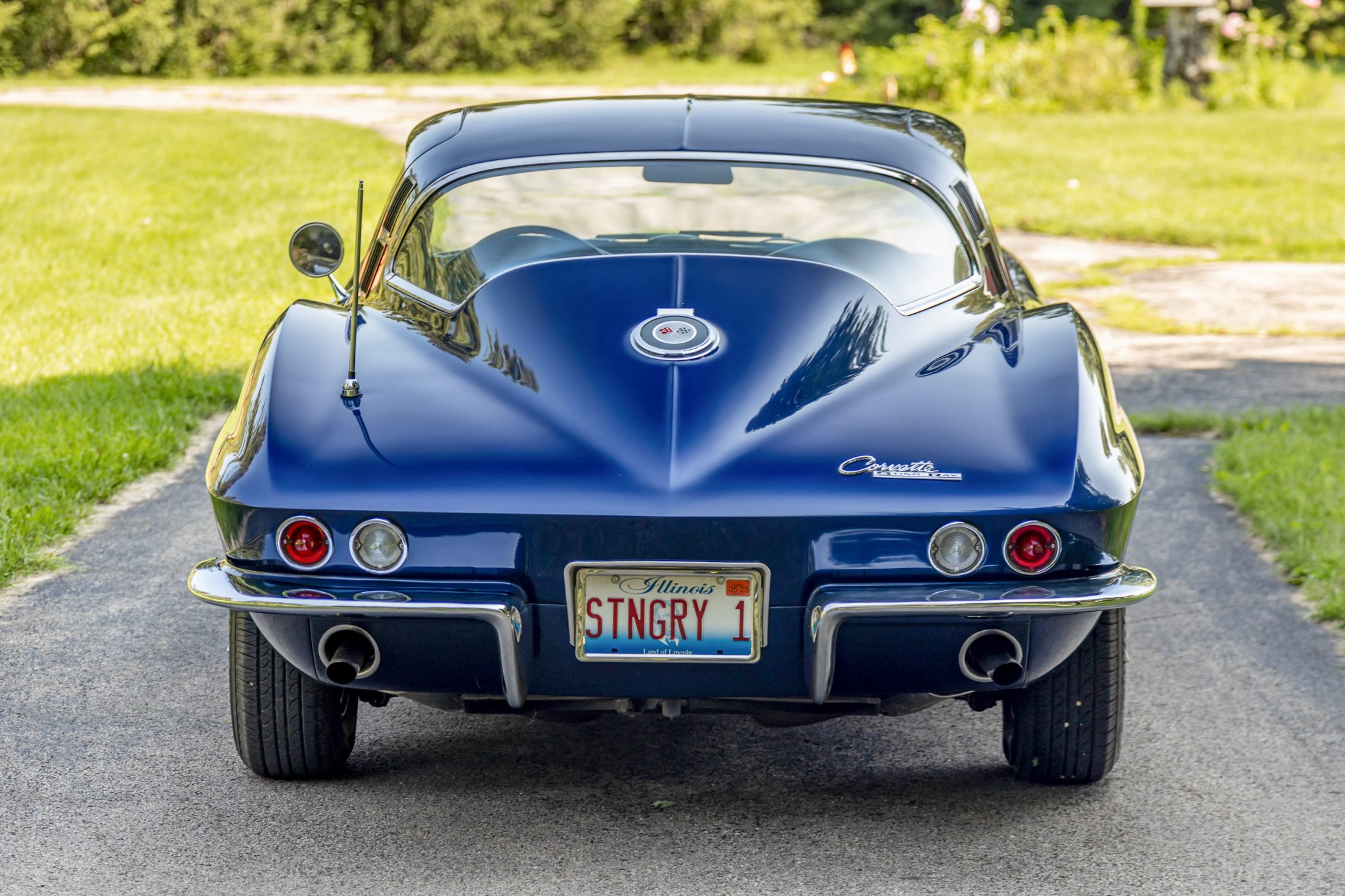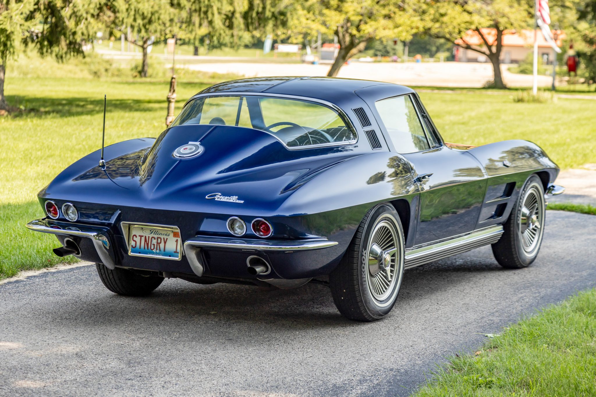 The 15″ turbine wheels are mounted with 205/75 Hankook Optimo H724 whitewall tires. The C2 Corvette was factory equipped with fully independent suspension, with upper and lower control arms at the front and a three-link setup with a transverse leaf spring at the rear. The seller notes the suspension was overhauled in the 1990s. Braking is handled by power-assisted four-wheel drums.