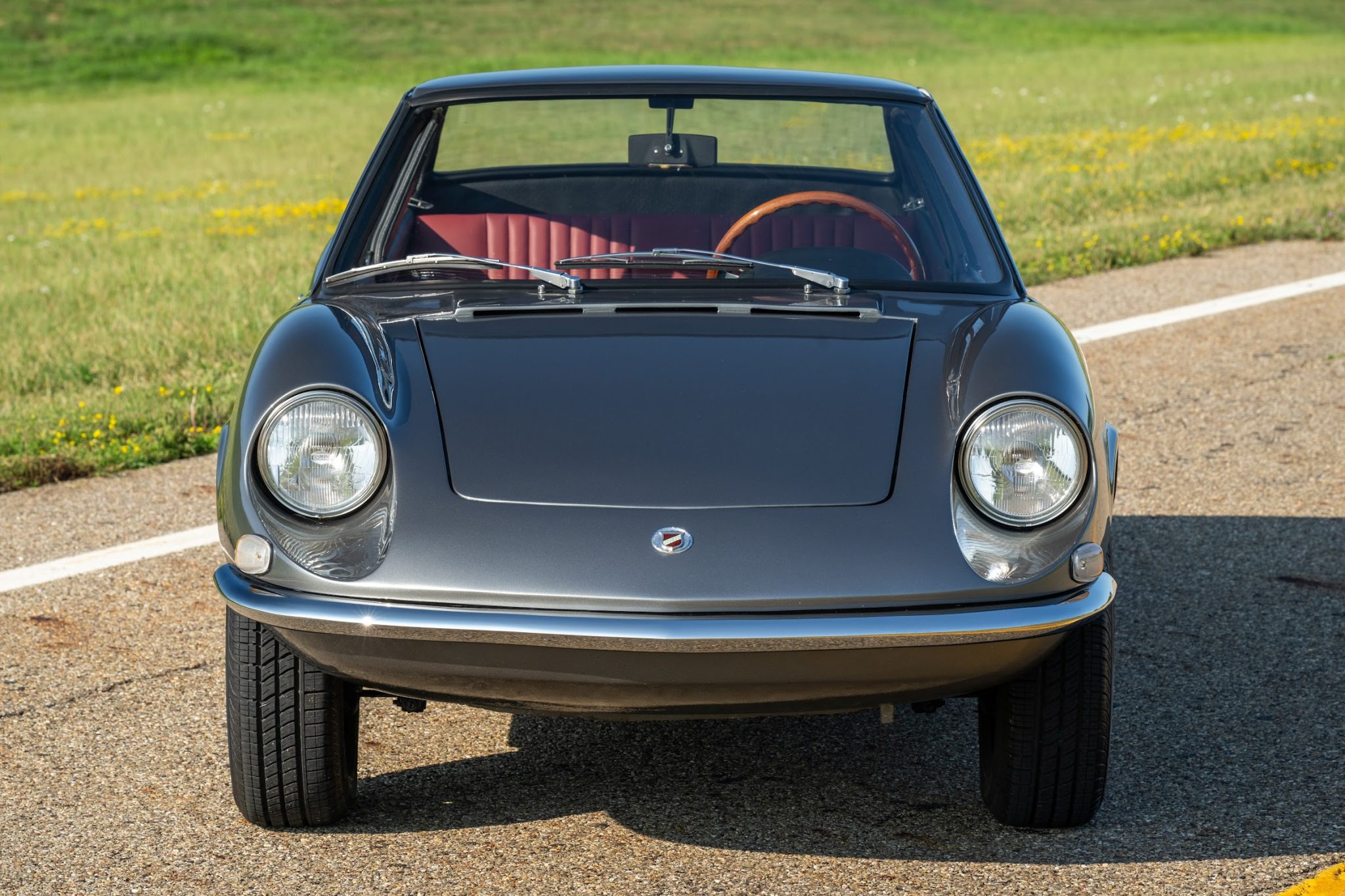 Cromodora 13″ wheels feature Moretti-branded center caps and are mounted with 175/70 Pirelli Cinturato P4 tires. A non-matching spare wheel and jack are stored in front trunk compartment. This Moretti shares its 80″ wheelbase with the contemporary Fiat 850 and features front disc brakes and an independent suspension with front and rear anti-roll bars. The seller reports that the steering system, suspension, and brakes were overhauled as part of the refurbishment.