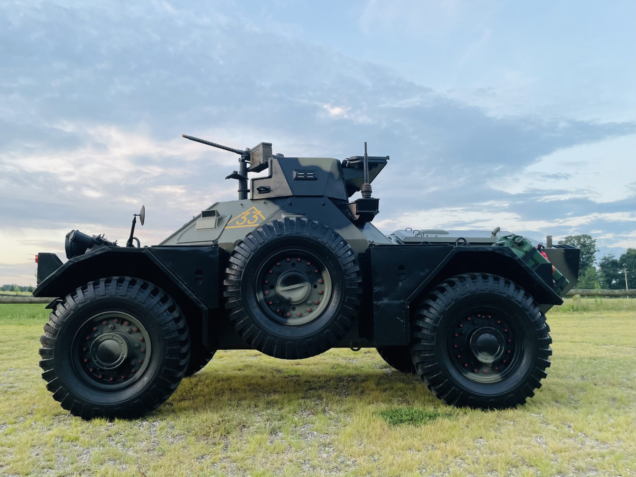 Eight-lug 16″ steel wheels wear 9.00-series Dunlop Trakgrip tires, and a matching spare is mounted to the left side. The vehicle rides on an independent suspension with coil springs and hydraulic dampers all around.