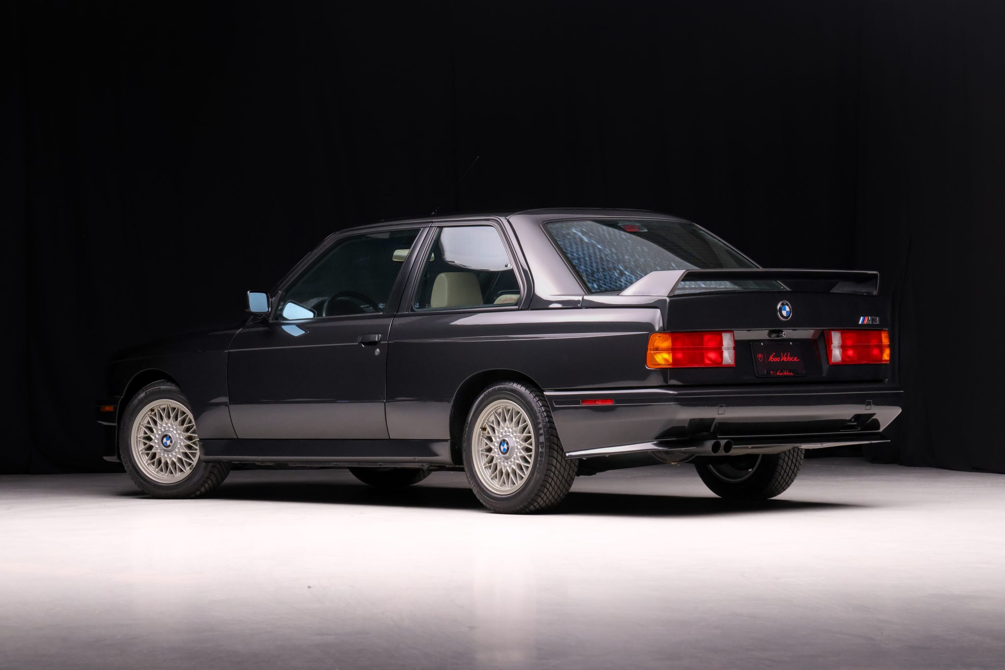 The 15″ basketweave wheels feature BMW-roundel center caps and are mounted with 205/55 Pirelli P600 tires. The MacPherson strut/semi-trailing arm suspension was revised for the M3 with a thicker rear anti-roll bar as well as shorter and stiffer springs. Braking is handled by four-wheel antilock discs, and the fluid was flushed in preparation for the sale.