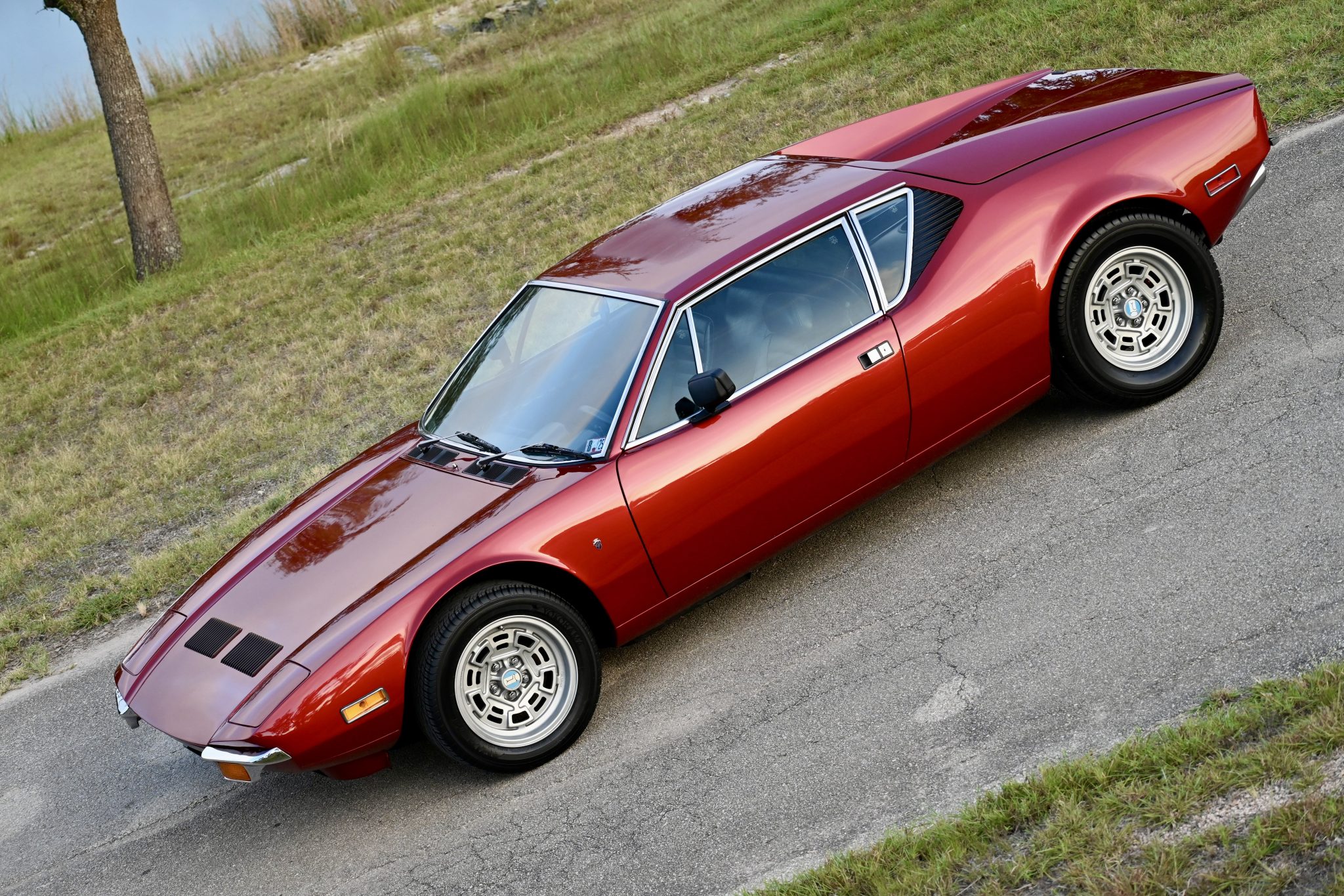 Silver-finished 15″ Campagnolo cast magnesium wheels are mounted with Yokohama tires measuring 225/50 up front and 295/50 out back. The car rides on a four-wheel independent suspension, and braking is handled by power-assisted discs at each corner. The ball joints, brake master cylinder, pads, and calipers were replaced under prior ownership.
