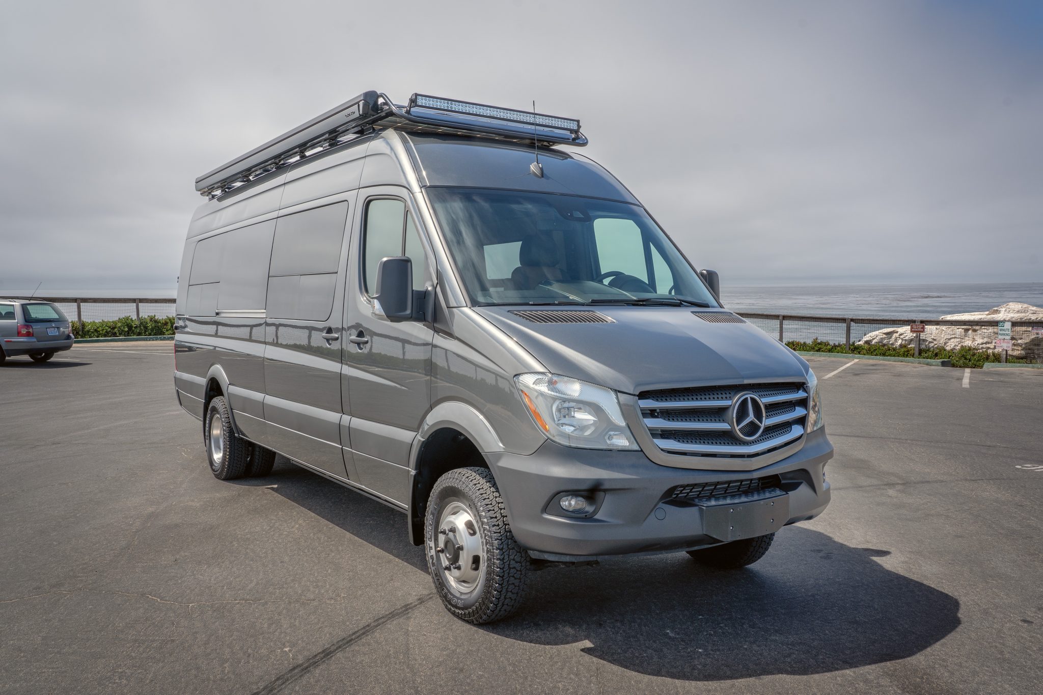 Silver-finished 16″ Alcoa aluminum wheels are mounted with 215/85 Kumho Road Venture AT51 tires. The van rides on independent front suspension and a solid dually rear axle, and braking is handled by discs at all four corners. The chassis is equipped with Acceleration Slip Regulation.