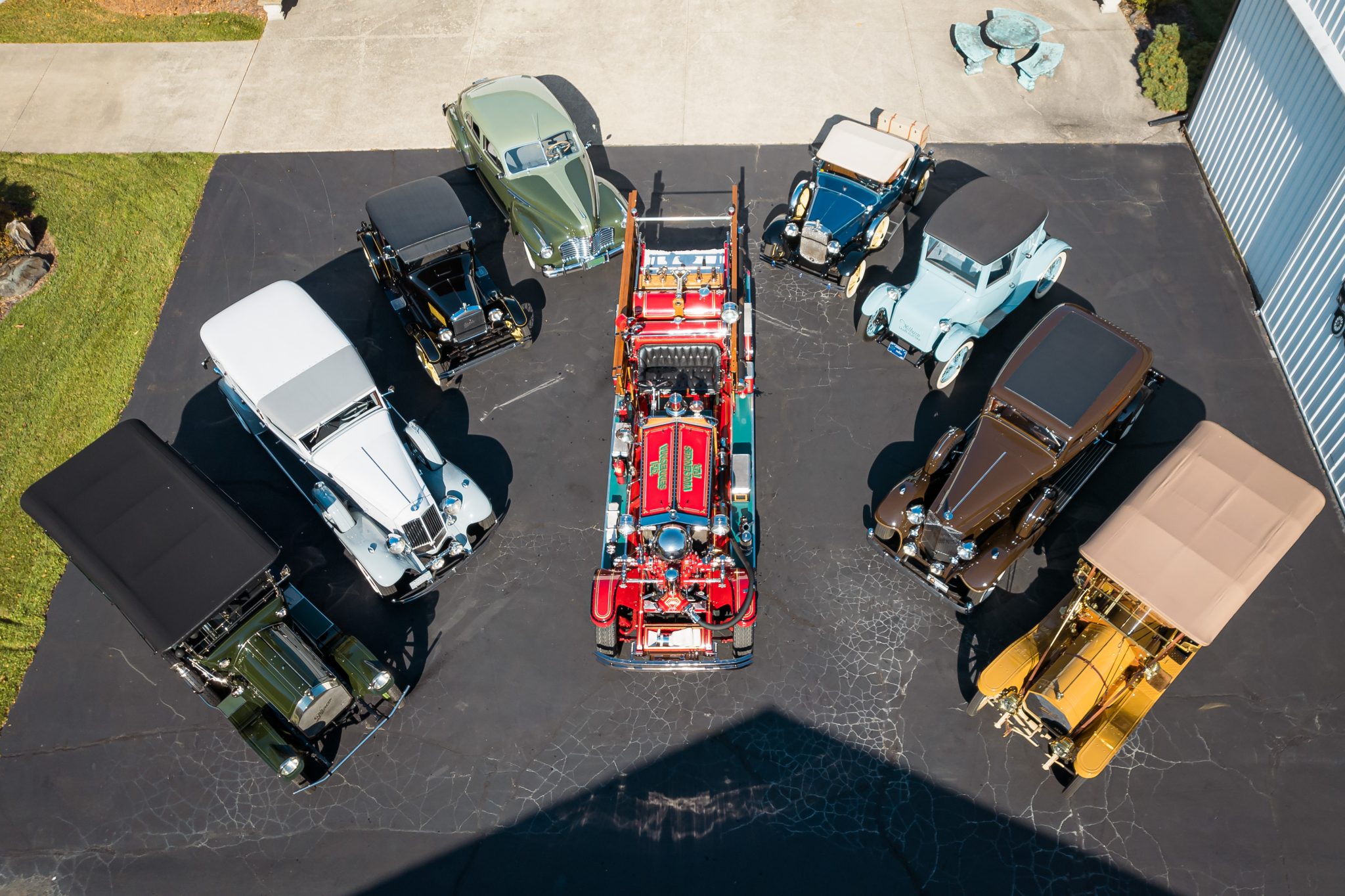 This example is said to have undergone a refurbishment prior to current ownership and is finished in pale blue with black pinstriping and “Milburn Light Electric” script on its nose panel. Features include a fabric roof covering, a transparent windshield visor, a driver-side mirror, and electric lighting with dim and bright settings. An AACA Senior National First Prize badge dated 1989 is affixed to the rear battery compartment lid.