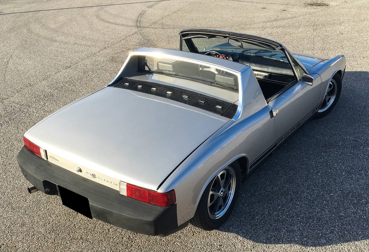 On the outside, this Porsche 914/4 is in excellent condition. The car received a full paint job during its restoration in 2016 and therefore presents very well even if very slight roughness is visible in places. The front and rear compartments were redone the same year and the seller indicates that the car now shows no corrosion. Plastics, seals and optics are in very good condition.