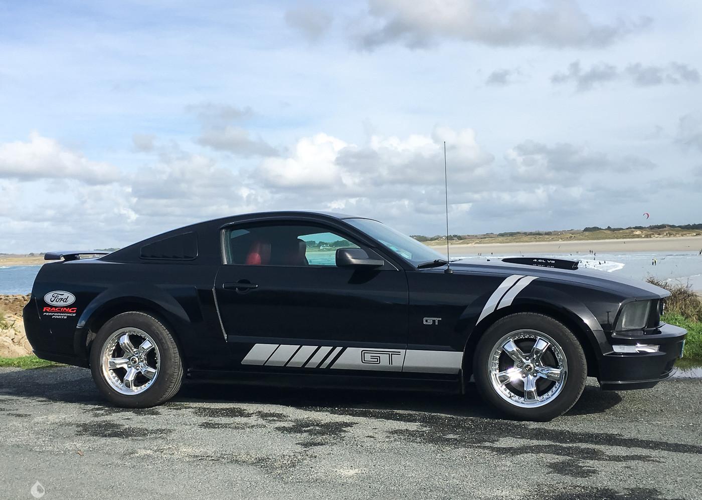 The interior is in good condition and completely original. The red leather upholstery has no tears or holes but shows slight traces of wear. The steering wheel and the dashboard are well preserved and do not show any pronounced patina. The on-board instrumentation as well as the electrical equipment work normally, especially the air conditioning. The seller mentions that the seat rail shows some surface rust. This Mustang is equipped with air conditioning, cruise control and power seats.