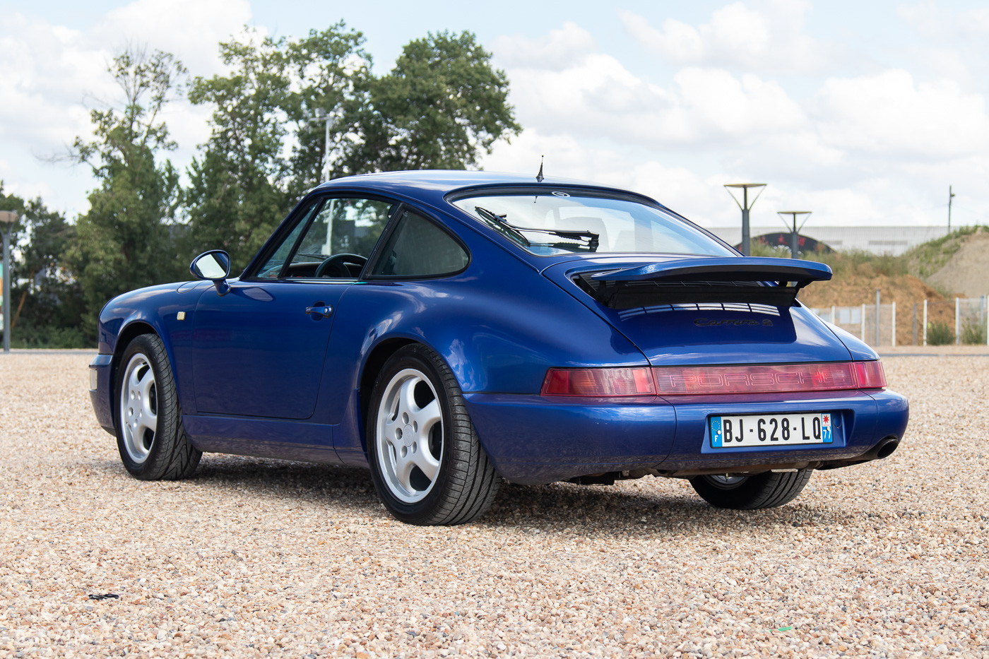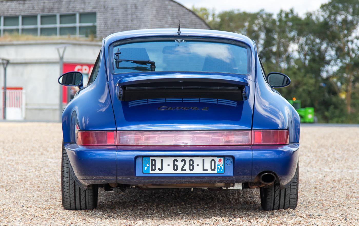 On the outside, this Porsche 964 is in very good condition. The blue paint is in excellent condition. The front end has been painted in the last few months. The bodywork is also in very good condition, with no dents or deformation. The seller indicates that there is no corrosion to report and some pictures of the underbody are available. The exterior plastics and gaskets are in good condition except for the door gaskets which are worn.