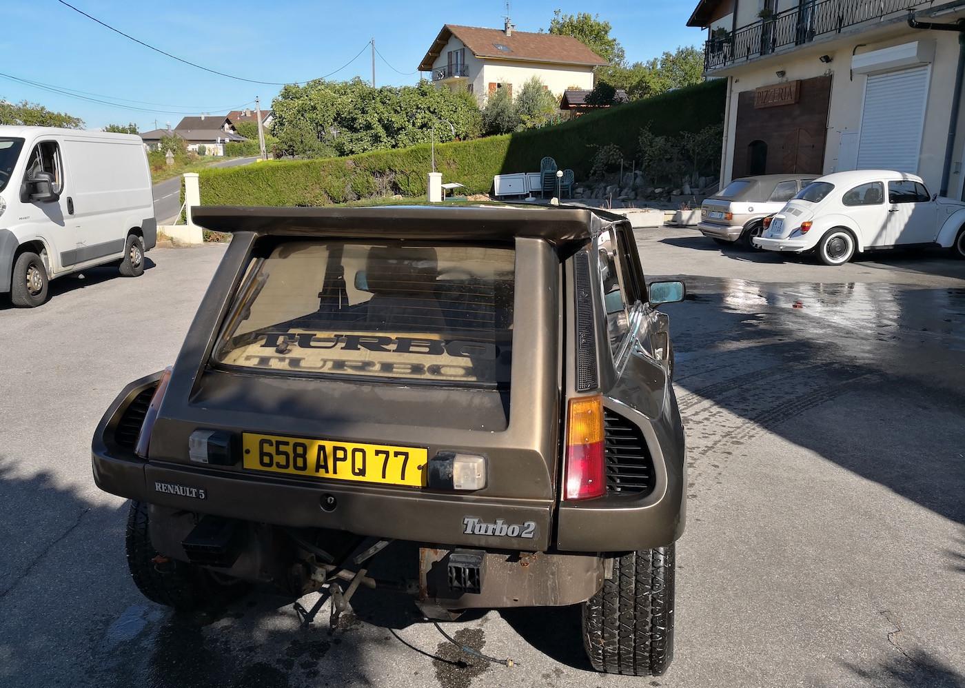 Outside the car is in good condition. The paint in its original color has some defects and needs to be repainted (chips and tarnishing in particular). The roof of this 8221 version is specific: it is made of aluminum. The car is equipped with a Maxi 5 body kit fitted as soon as it leaves the dealership. The original elements are provided: fenders, trunk, hood, front and rear bumper, as well as the rims. Plastics and exterior seals are in good condition, as well as the headlights. The seller indicates that this 5 Turbo is free of perforating corrosion, except for the rear pillar tops.
