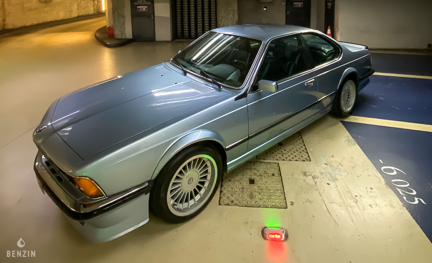 The interior is in very good condition and has recently been refinished. The blue leather upholstery has no tears or holes but shows very slight traces of wear. The dashboard is in very good condition. The on-board instrumentation and electrical equipment are working normally. This M635csi has power windows and air conditioning.