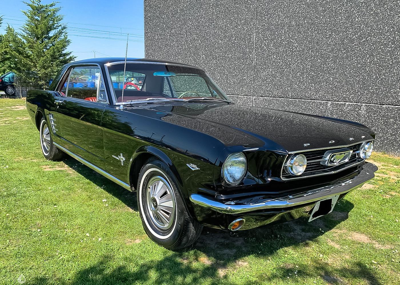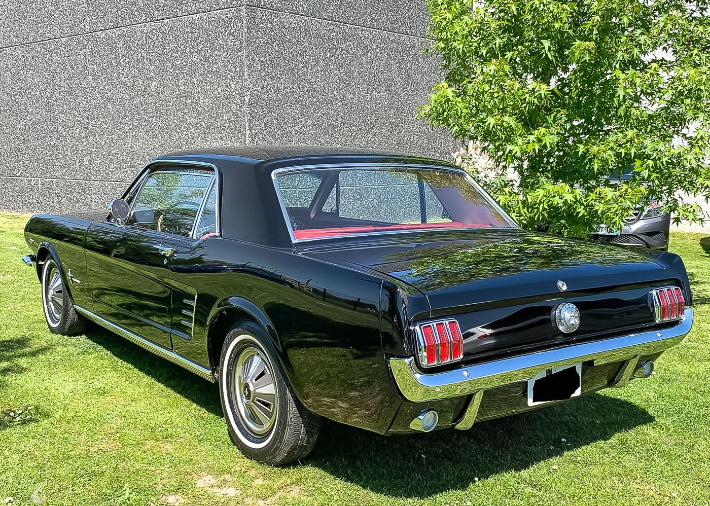 On the outside the car is in very good condition. The paint in its original black color was redone a few years ago and has only a few visible defects in the gallery. We will note a defect on the roof. The plastics and chromes are in very good condition, as well as the headlights. The seller indicates that the chassis of this Mustang is sound. He also specifies that the car is fully original on the outside. It is equipped with fog lights.
