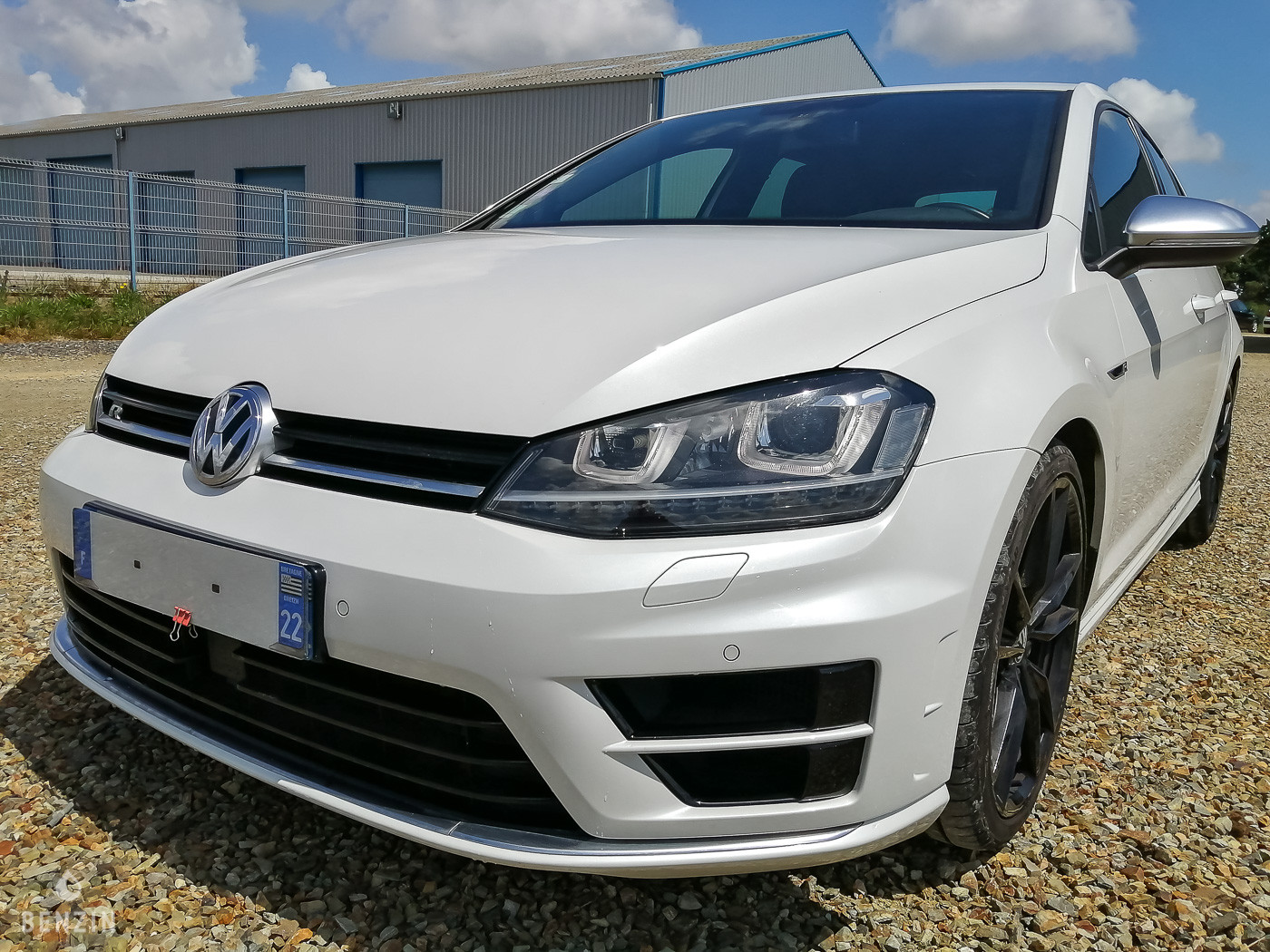 Outside the car is in very good condition. The original paint in its white color has only very few defects. The exterior plastics and seals are in excellent condition, as are the headlights. The seller indicates that this Golf is free of rust. He also specifies that the car is entirely original on the outside except for the rims repainted in black at the request of the first owner.