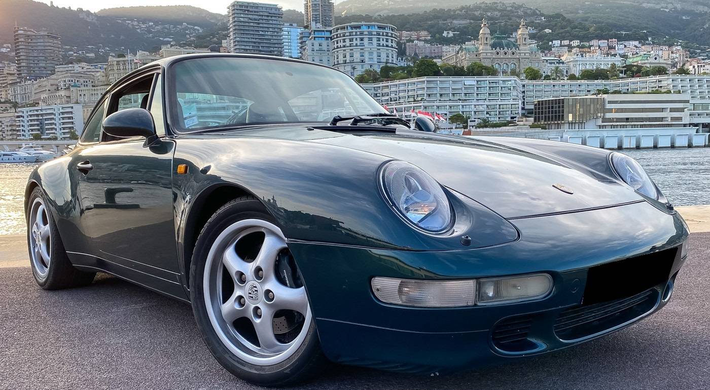 On the outside the car is in very good condition. The original paint in its Aventuragrün Perlcolor (adventure green) color has only very few visible defects in the gallery. The exterior plastics and seals are in good condition, as are the headlights. The seller indicates that this 993 is free of corrosion. He also specifies that the car is equipped with a 911s front bumper and a stainless steel exhaust (the original bumper will be provided for sale).