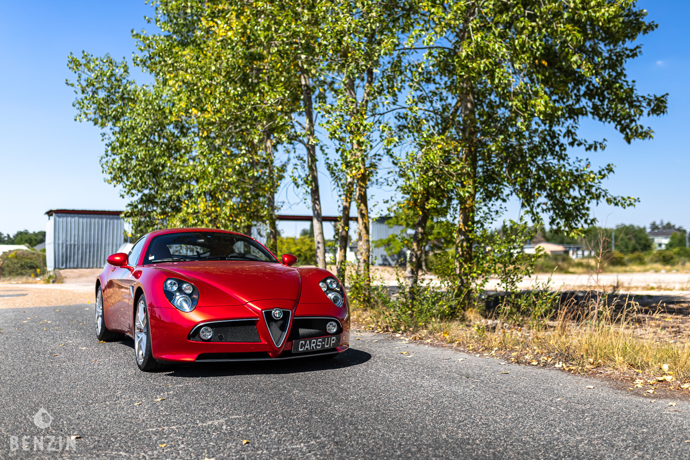 The interior is in excellent condition and entirely original. The full grain tan leather has no tears or holes. The steering wheel and the dashboard are in excellent condition. The on-board instrumentation and the electrical equipment are working normally. This 8C has the carbon pack, a cloverleaf on a white background, a GPS, a Bose Hi-Fi system and the specific luggage.