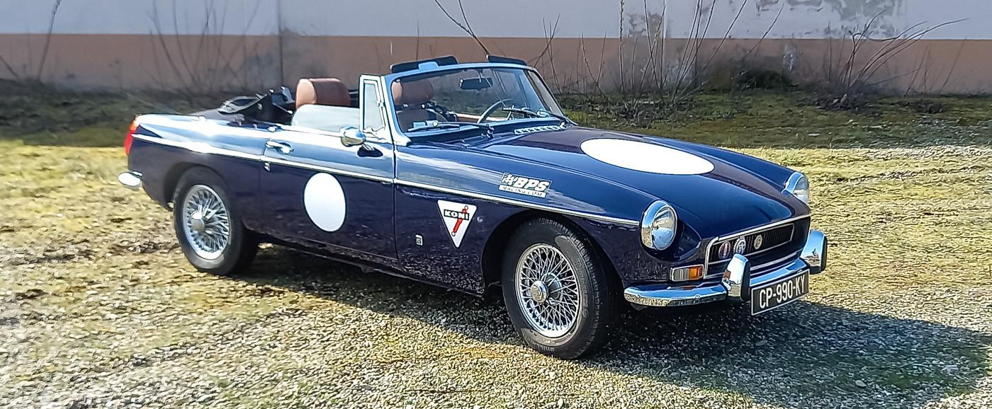On the outside, the car is in very good condition. The paint in its blue color has only very few defects visible in the gallery. The chromes and exterior seals are in good condition, as well as the headlights. The seller indicates that this MG B is sound. He also specifies that the car is fully original on the outside and that the soft top is waterproof.