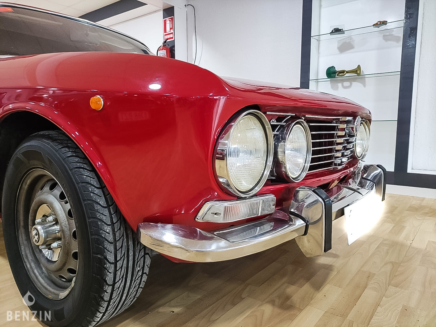 On the outside, the car is in very good condition. The paint in its red color has only a few visible defects in the gallery. The exterior plastics and seals are in good condition, as are the headlights. The seller indicates that this Alfa is free of corrosion. He also specifies that the car is entirely original on the outside.